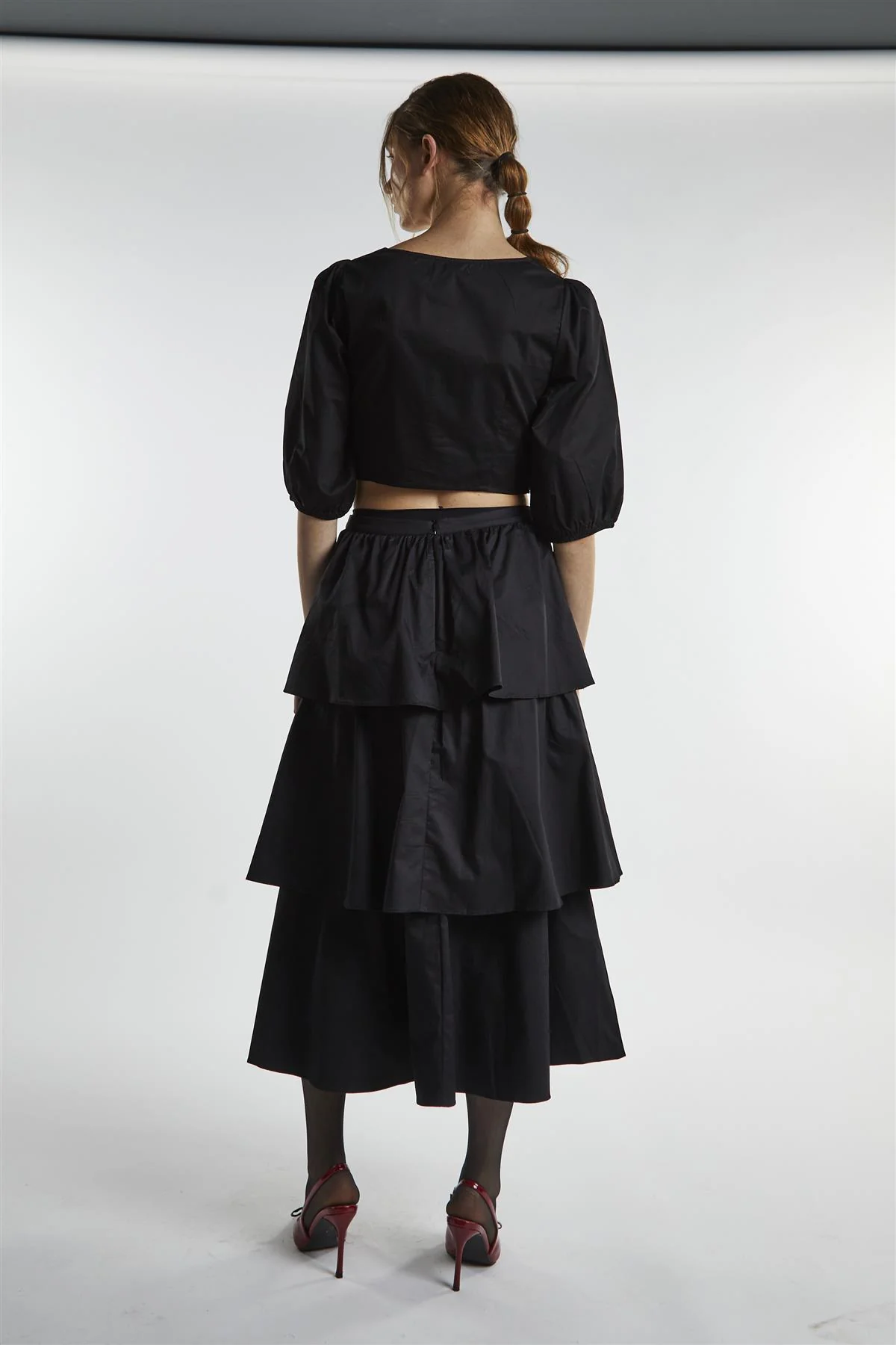 Olive-Lime Floral Bias-Cut Midi-Skirt