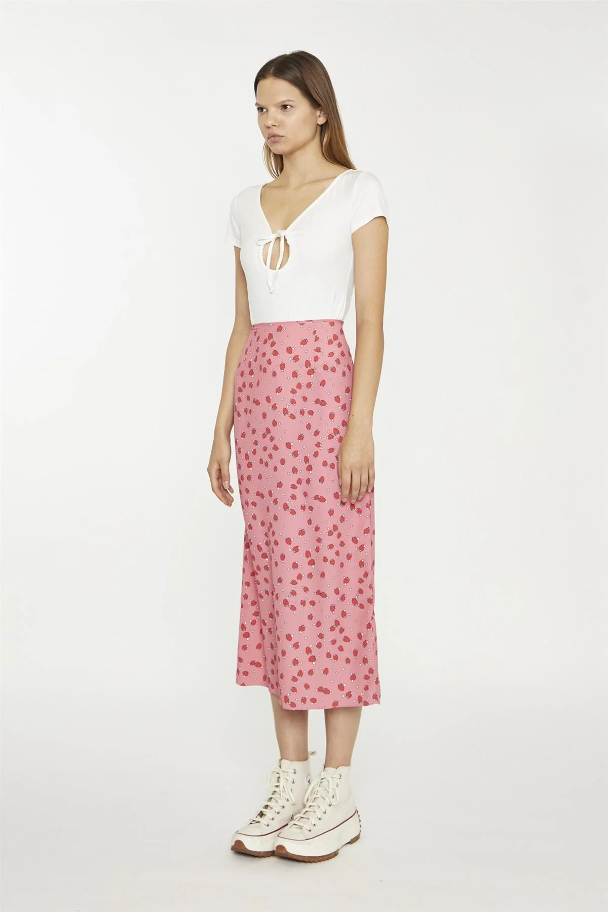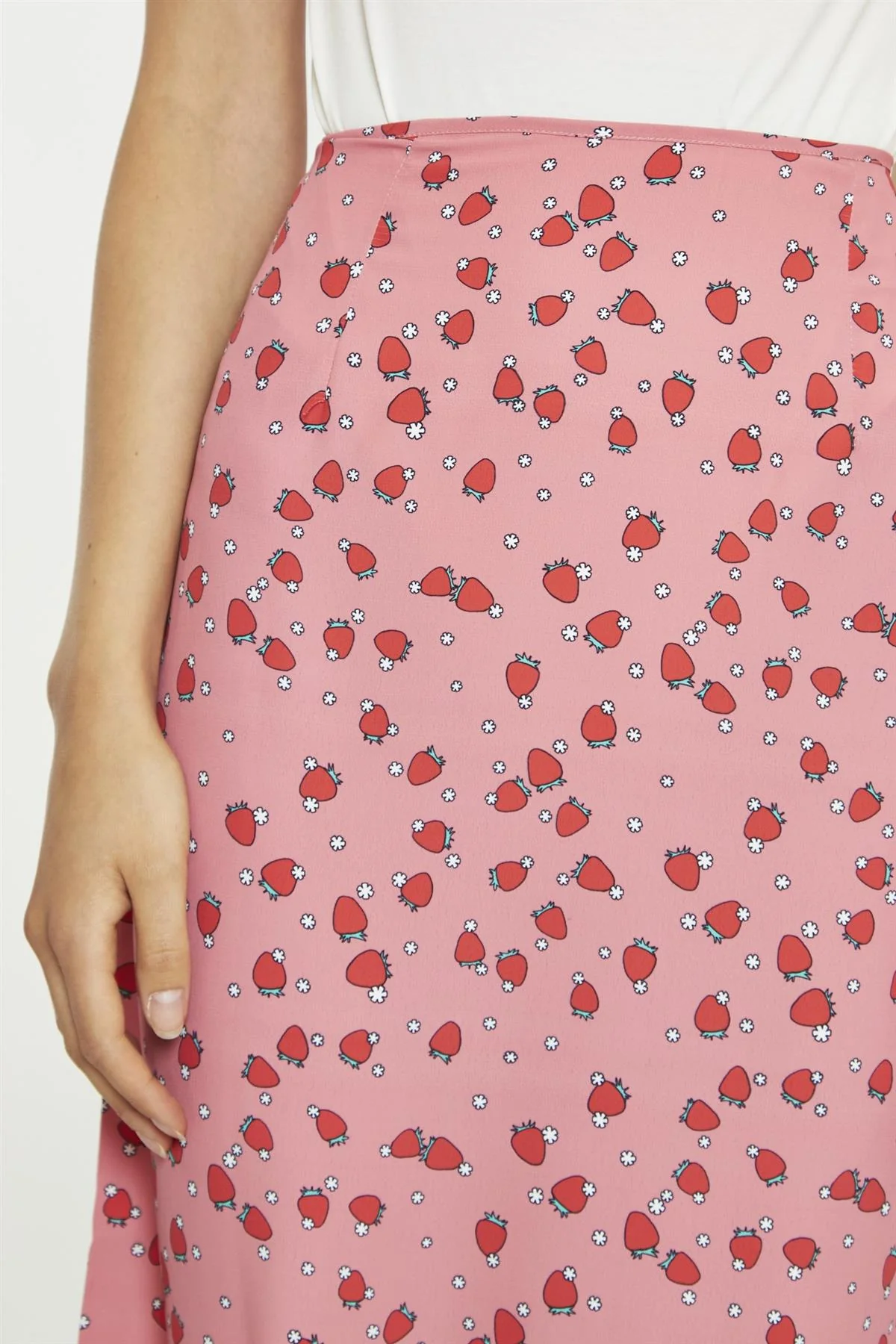 Pink Strawberry-Print Midaxi-Skirt