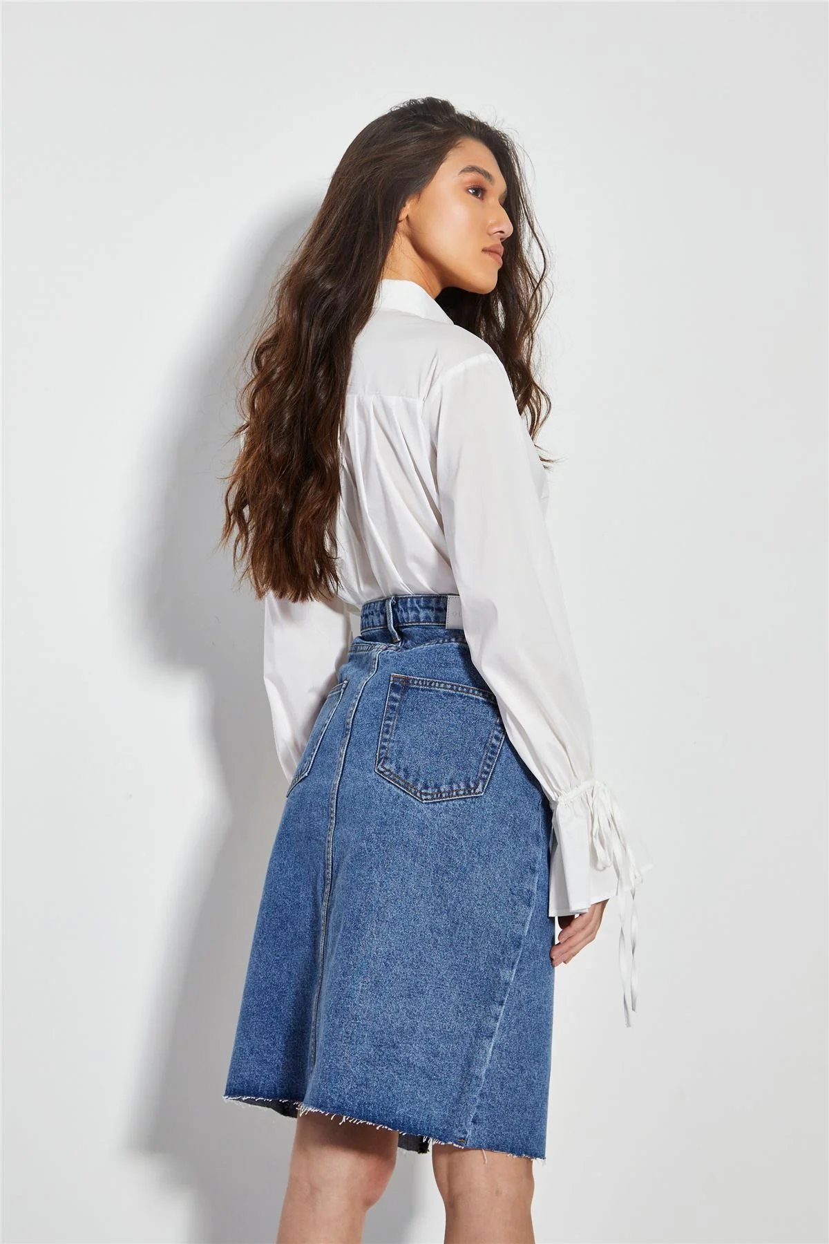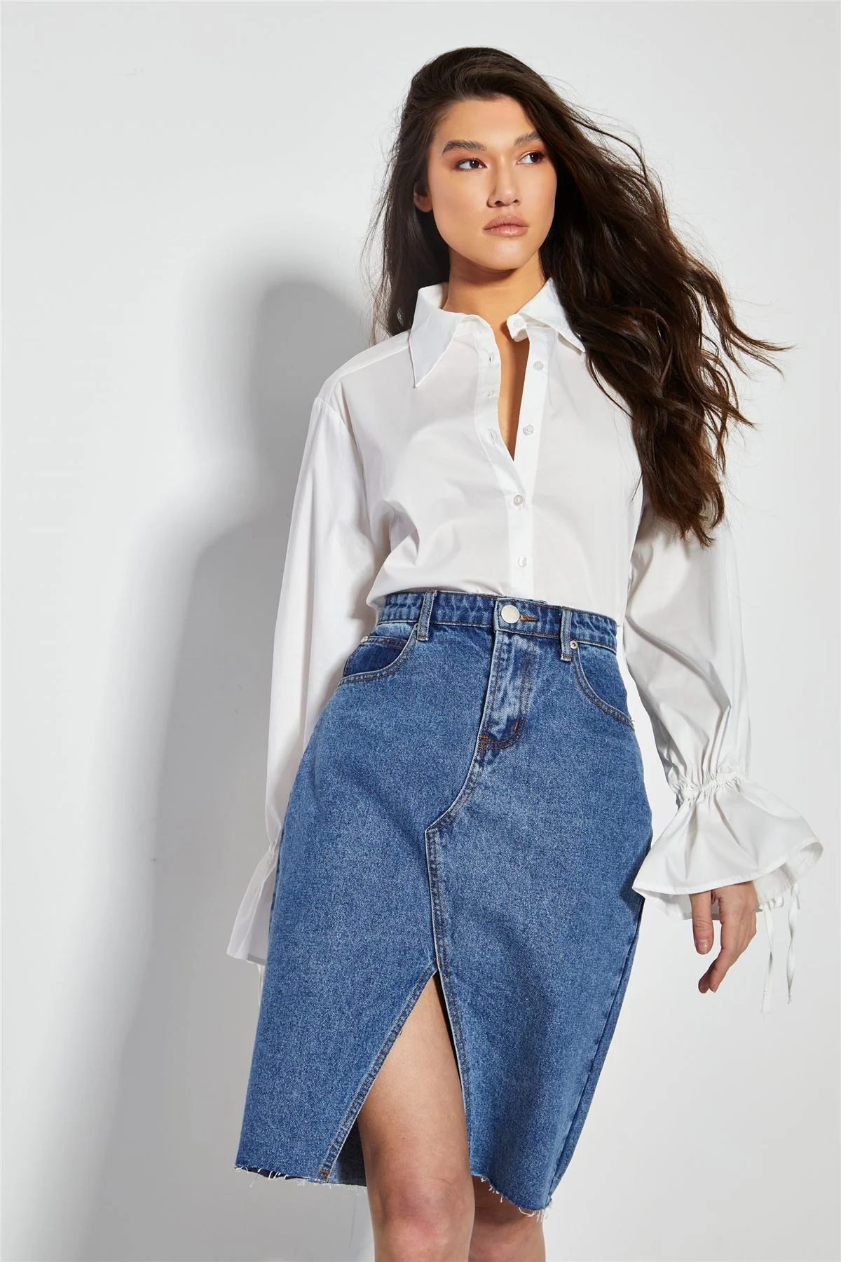 Mid Stone Split High Waisted Midi Skirt