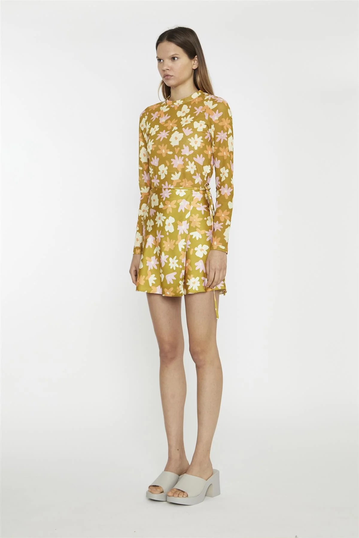 Olive Multi-Flower Wrap Mini-Skirt