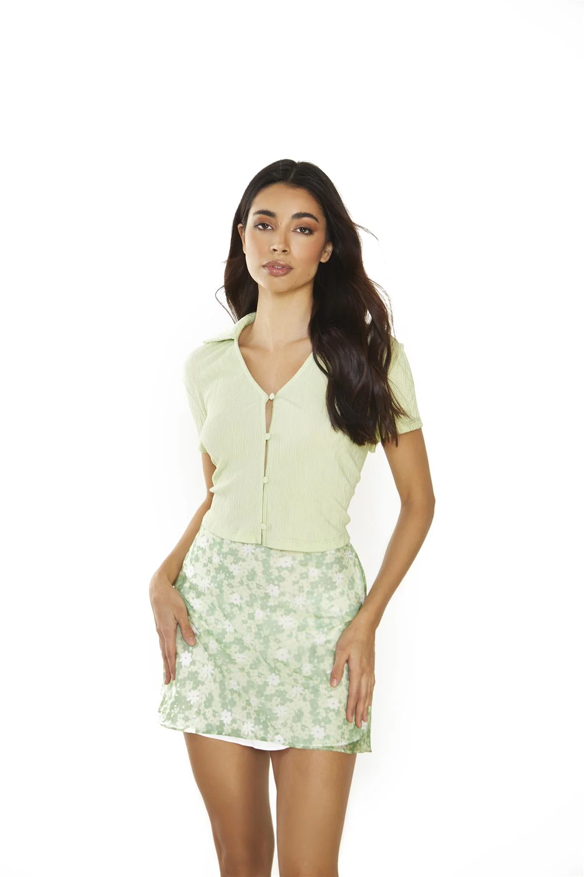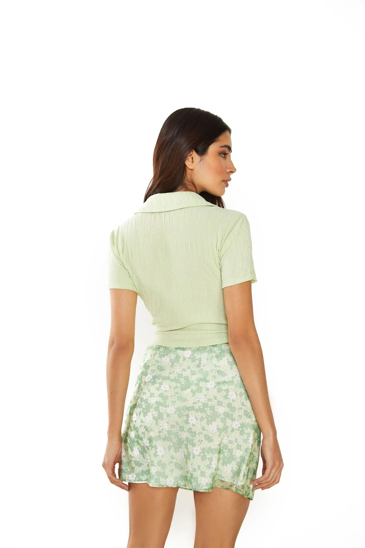 Apple Green Ditsy Sheer Mini-Skirt