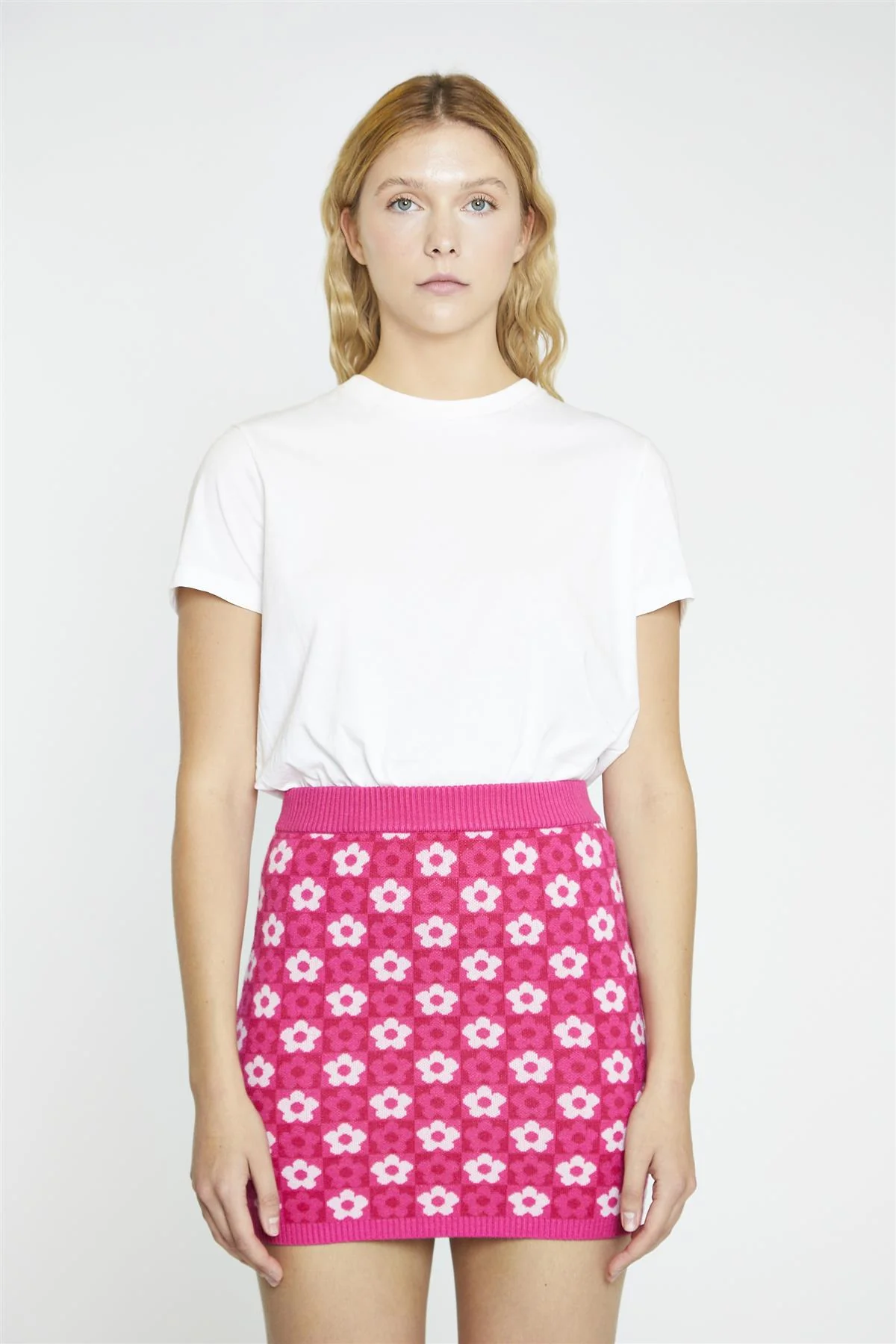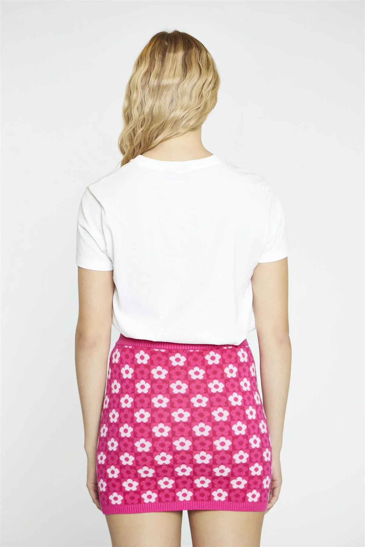 Pink Flower Check Bodycon Mini-Skirt