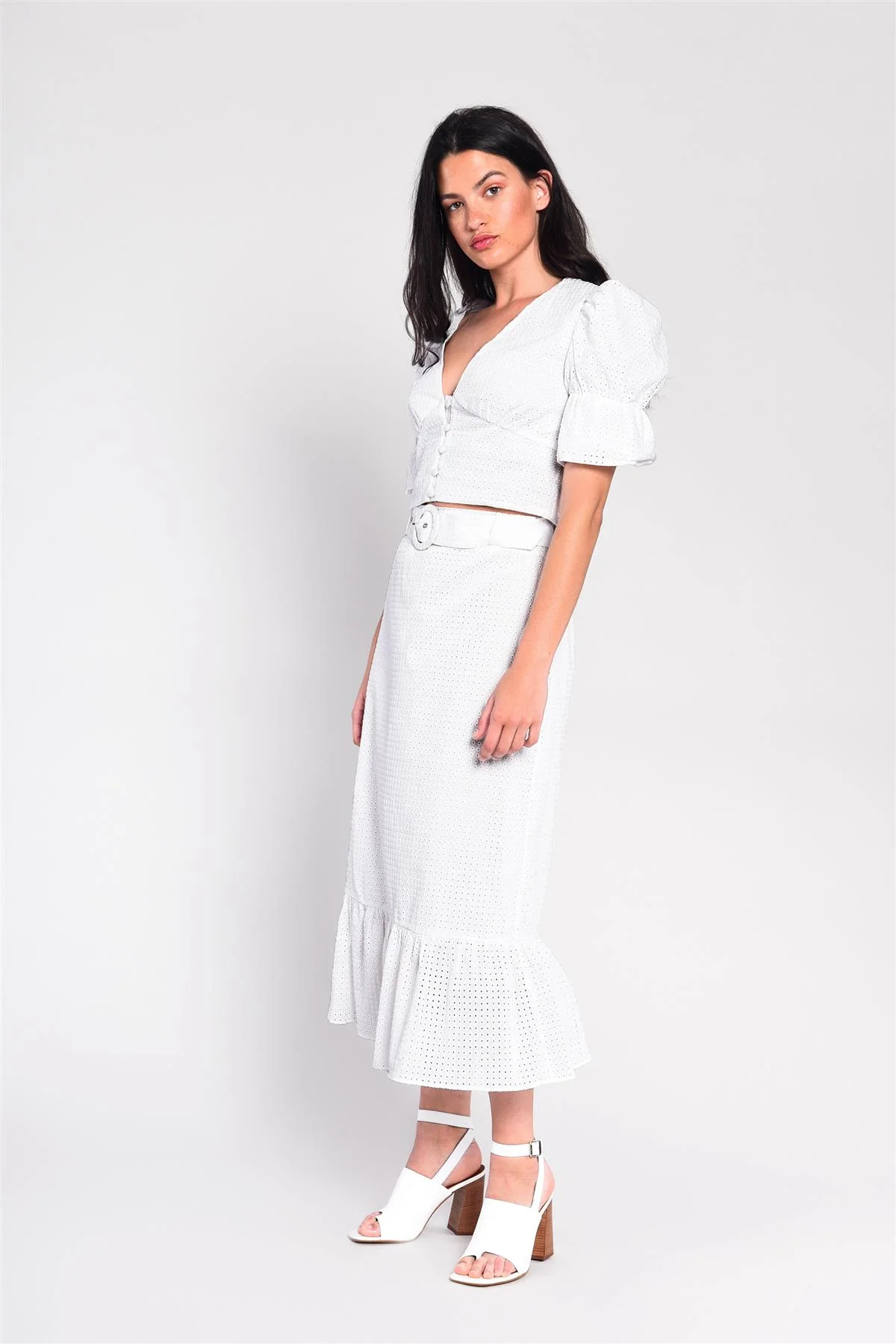 White Belted Midi-Skirt