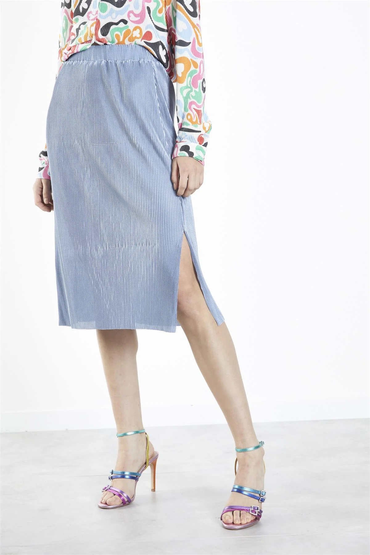 Dusty-Blue Plisse Side-Split Midi-Skirt
