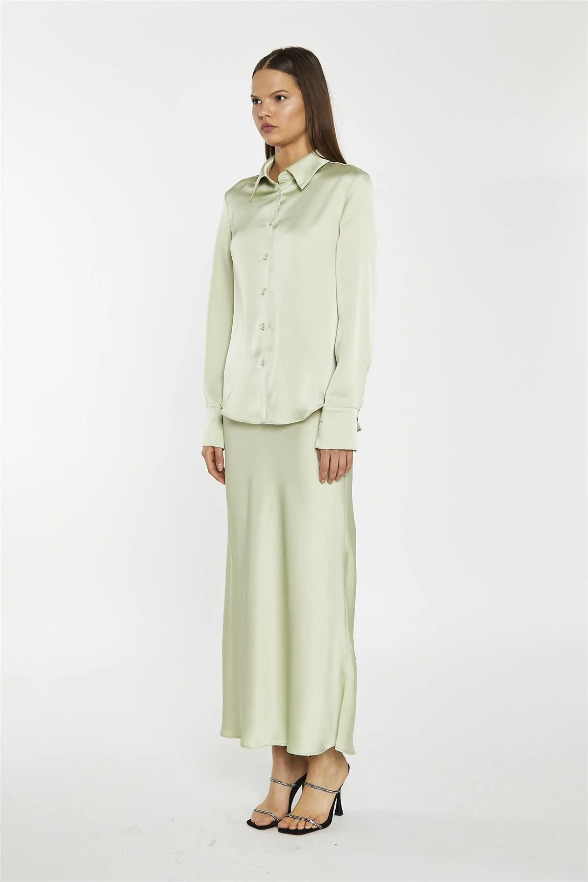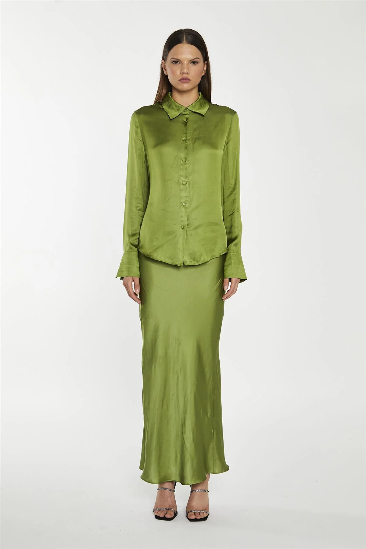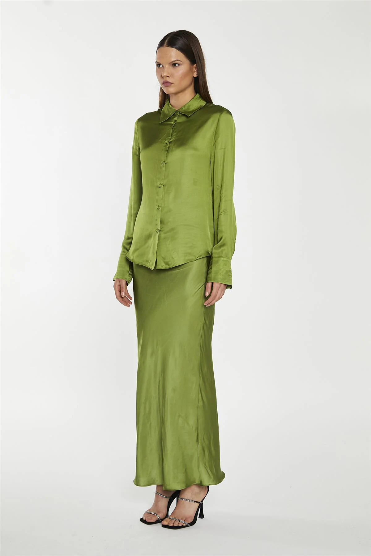 Dark-Apple Green Bias-Cut Midi-Skirt