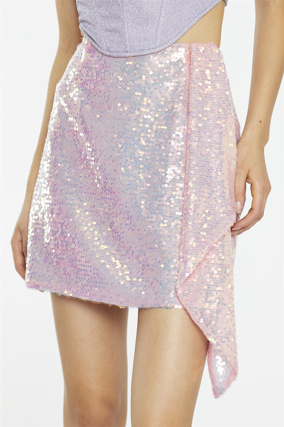 Pink-Iridescent Asymmetric Mini-Skirt