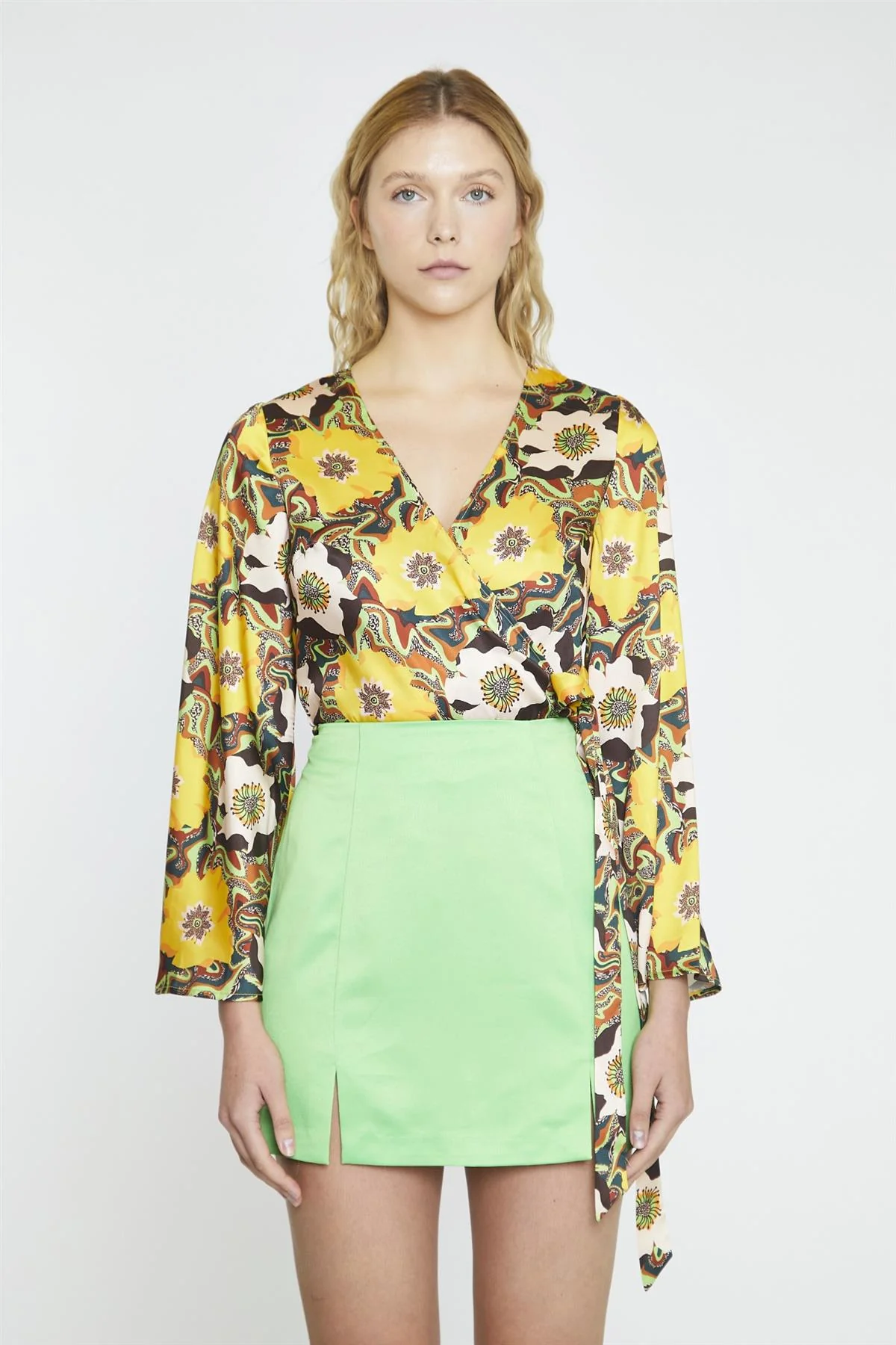 Lime-Multi-Daisy Mini-Skirt