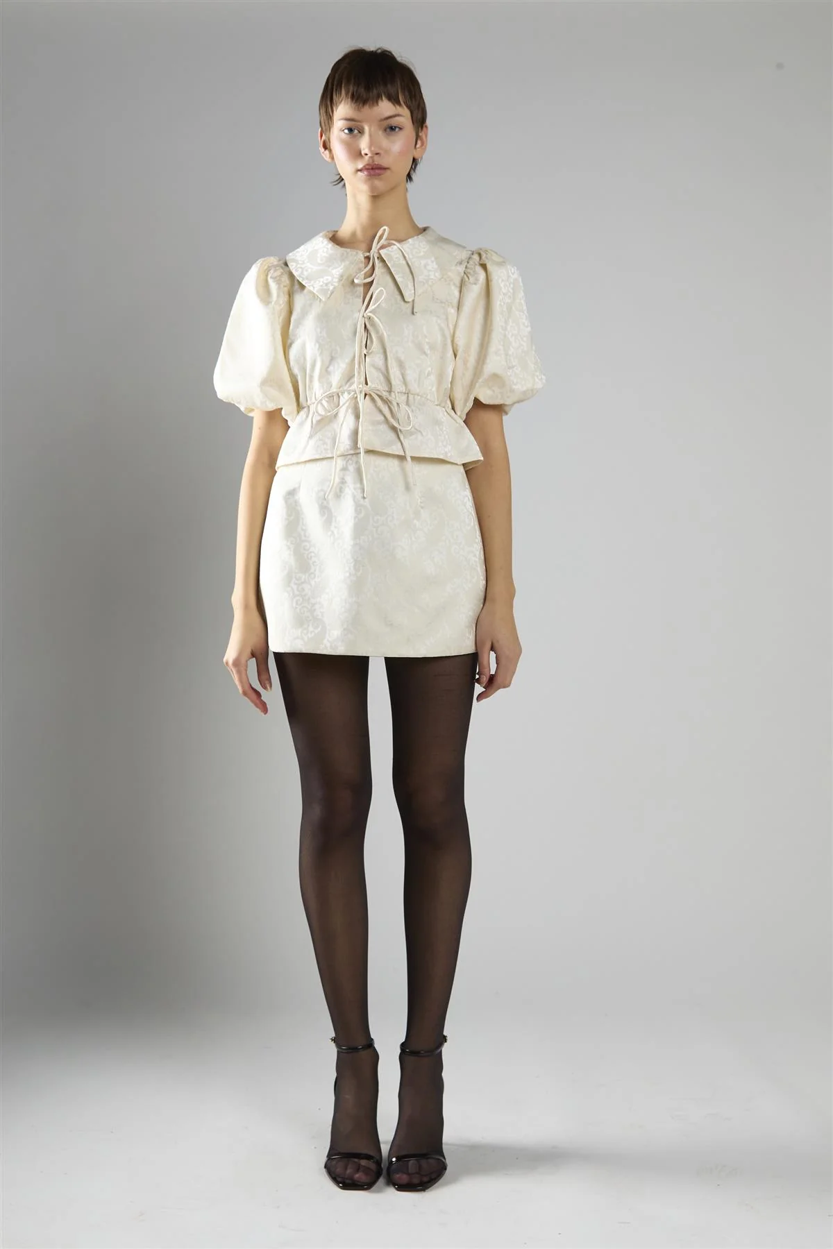 Cream Brocade A-Line Mini Skirt