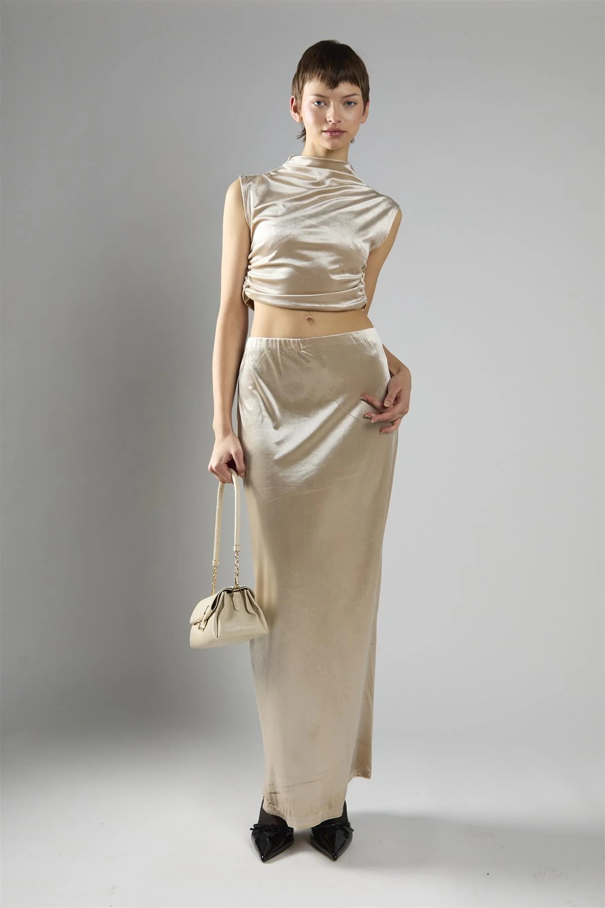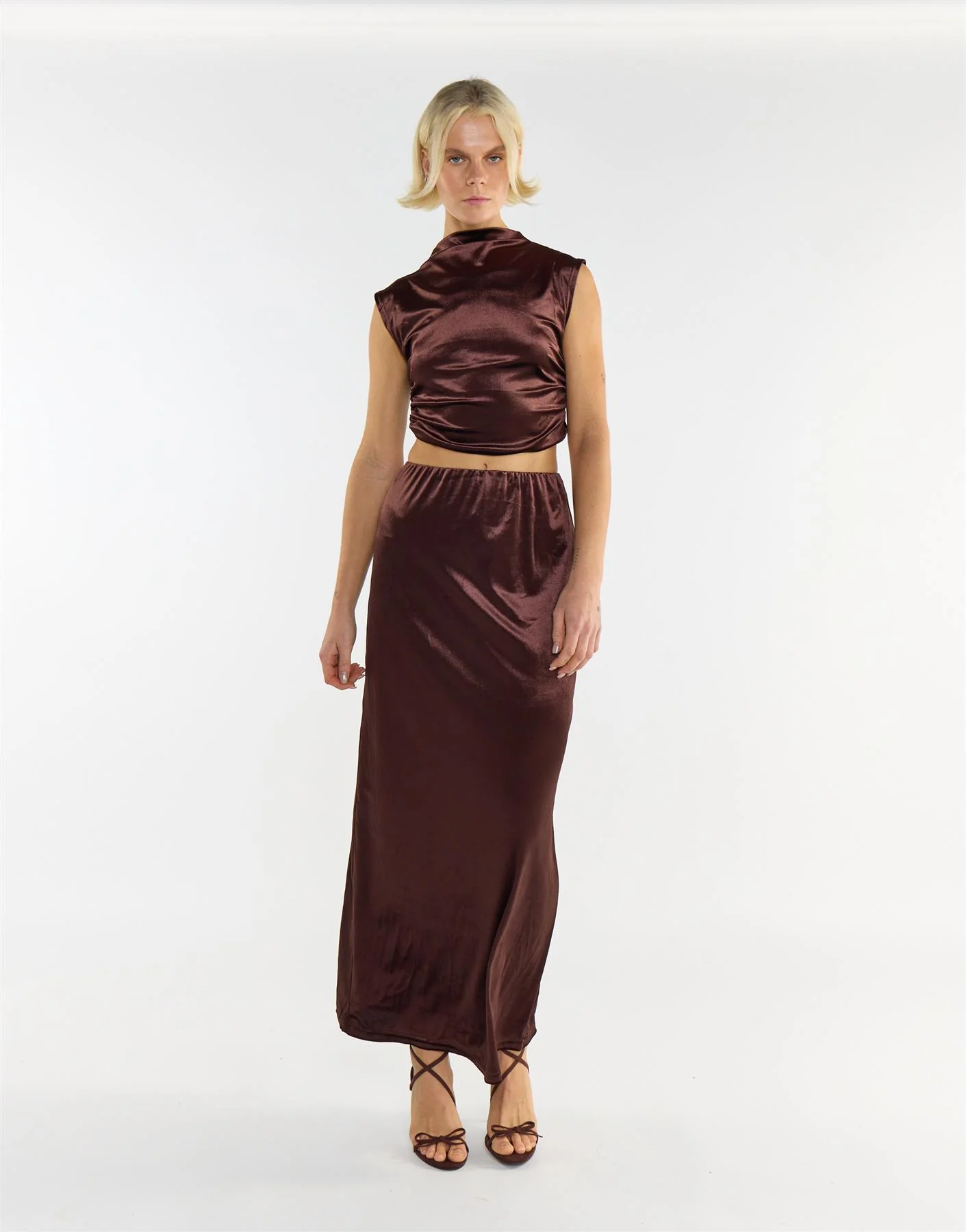 Burgundy Velvet Mid-Rise Maxi Skirt