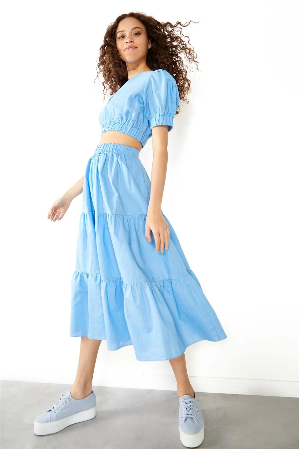 Cyan-Blue Tweed Diamante Trim Mini-Skirt