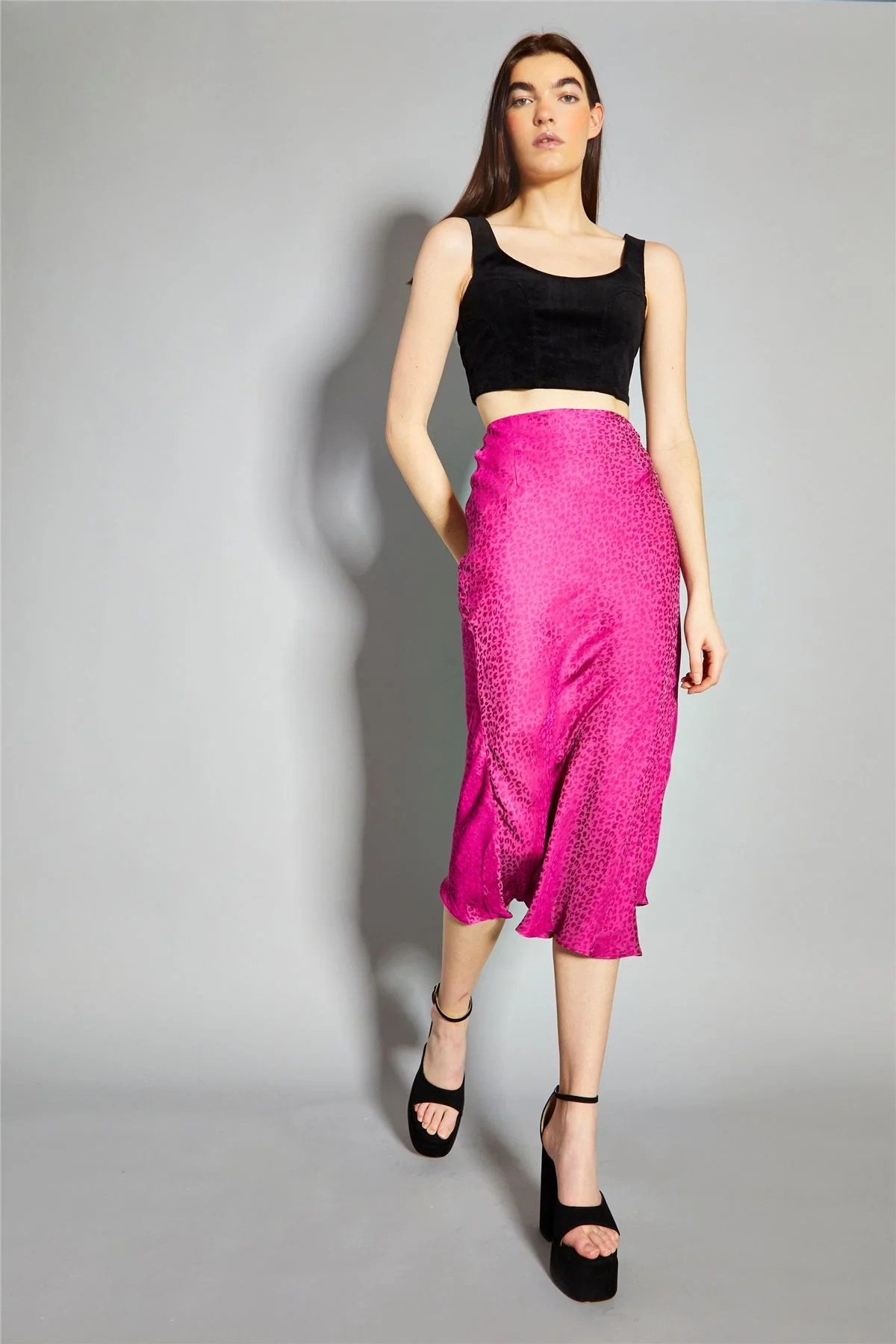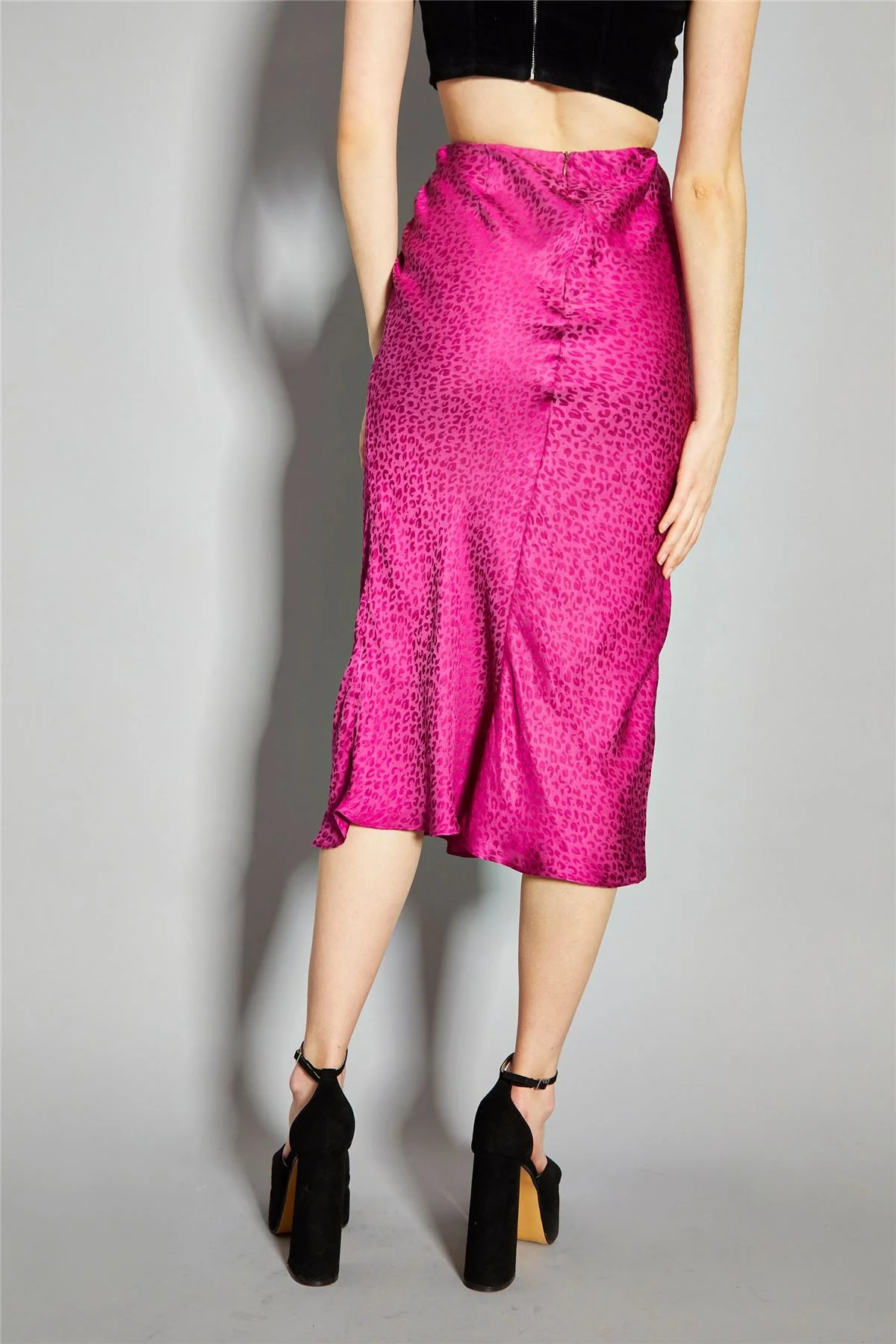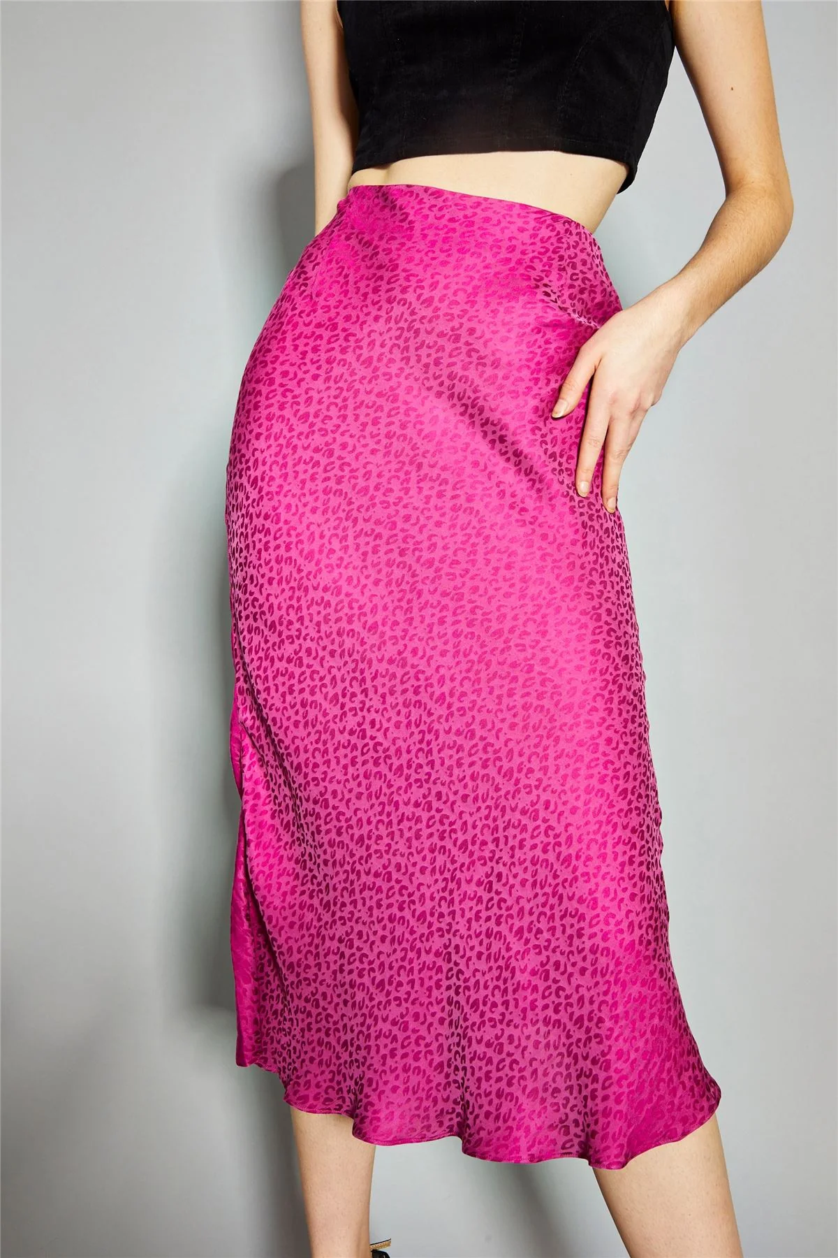 Deep-Orchid Leopard Bias-Cut Midi-Skirt