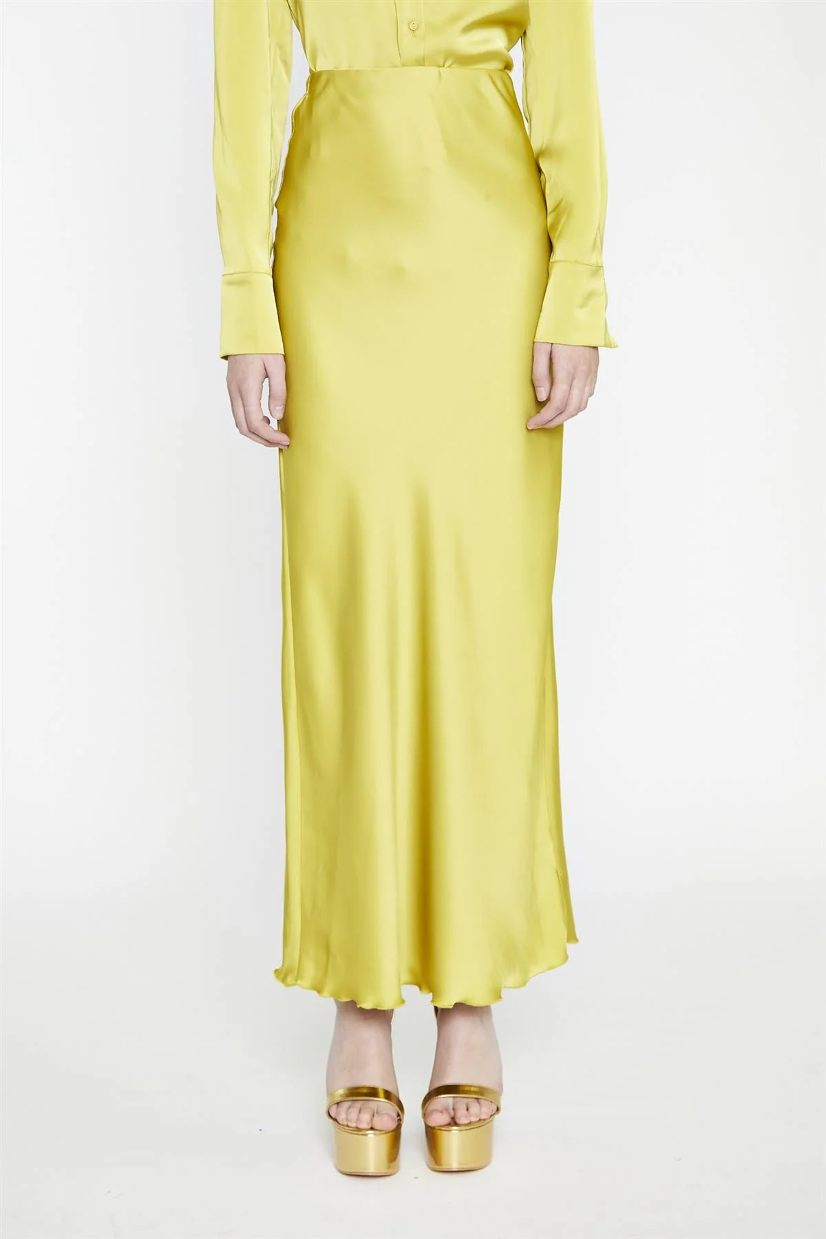 Chartreuse Sateen Bias-Cut Midi-Skirt