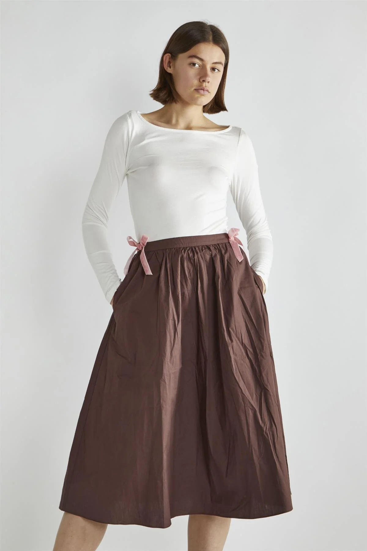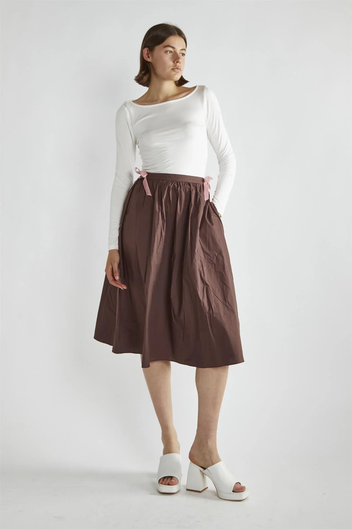Brown Bow-Detail Midi-Skirt