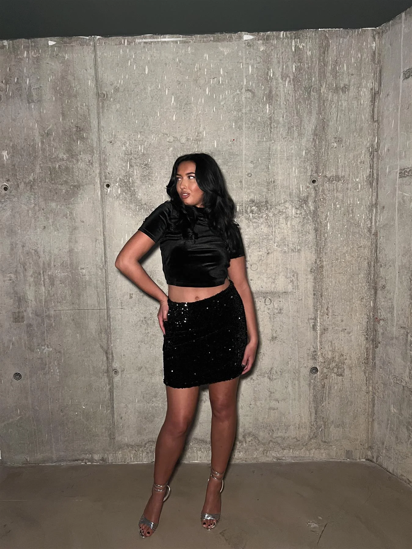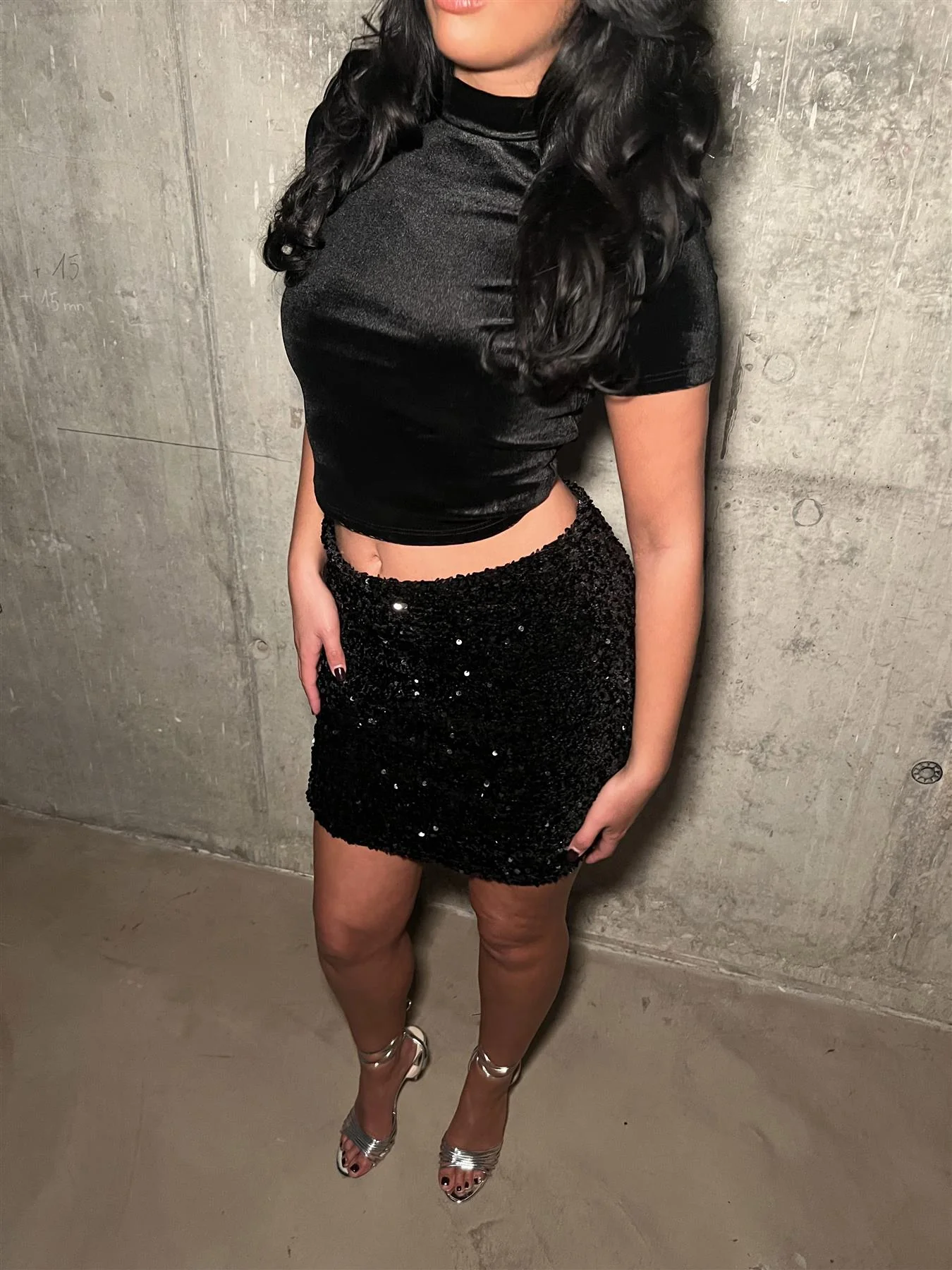 Black Diamond-Sequin Mini-Skirt