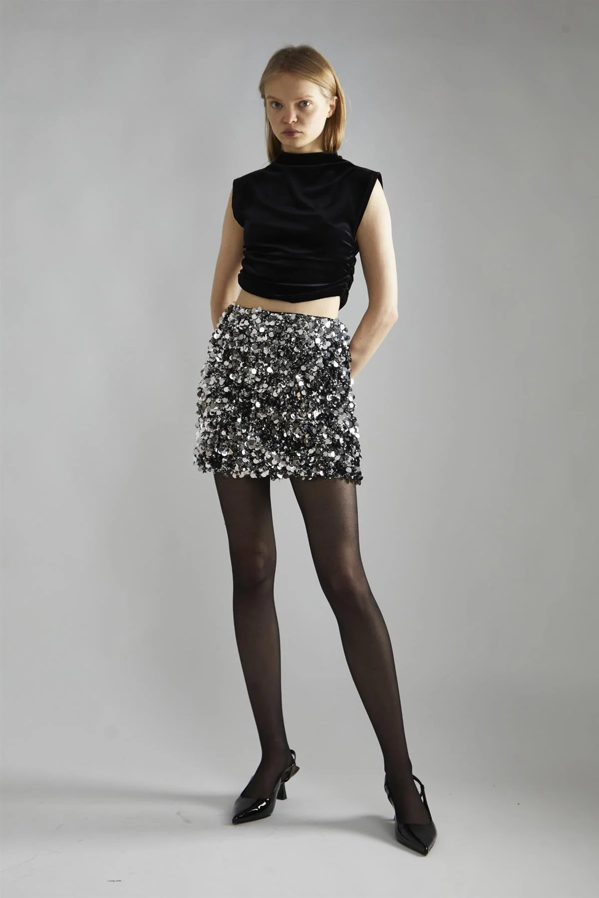 Large Pewter-Sequin Mini-Skirt