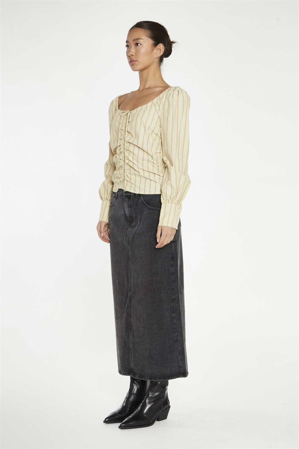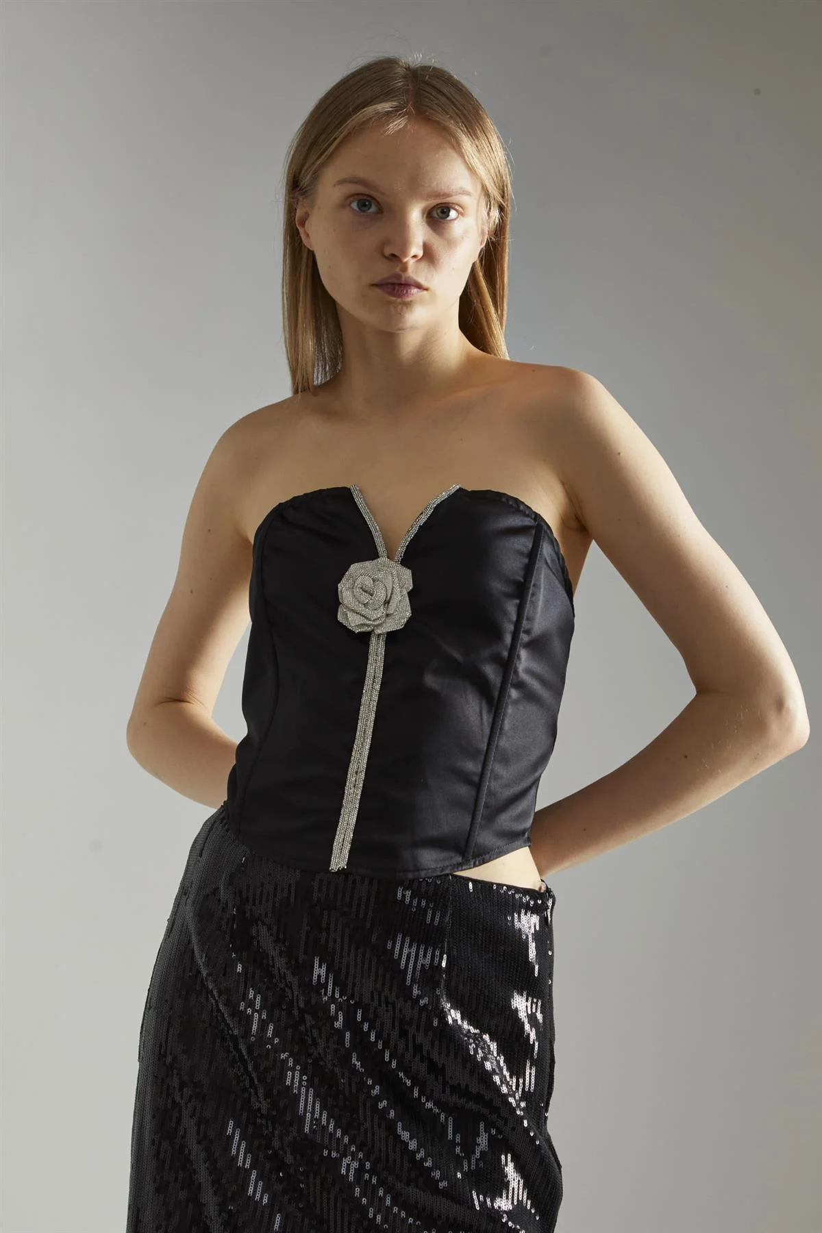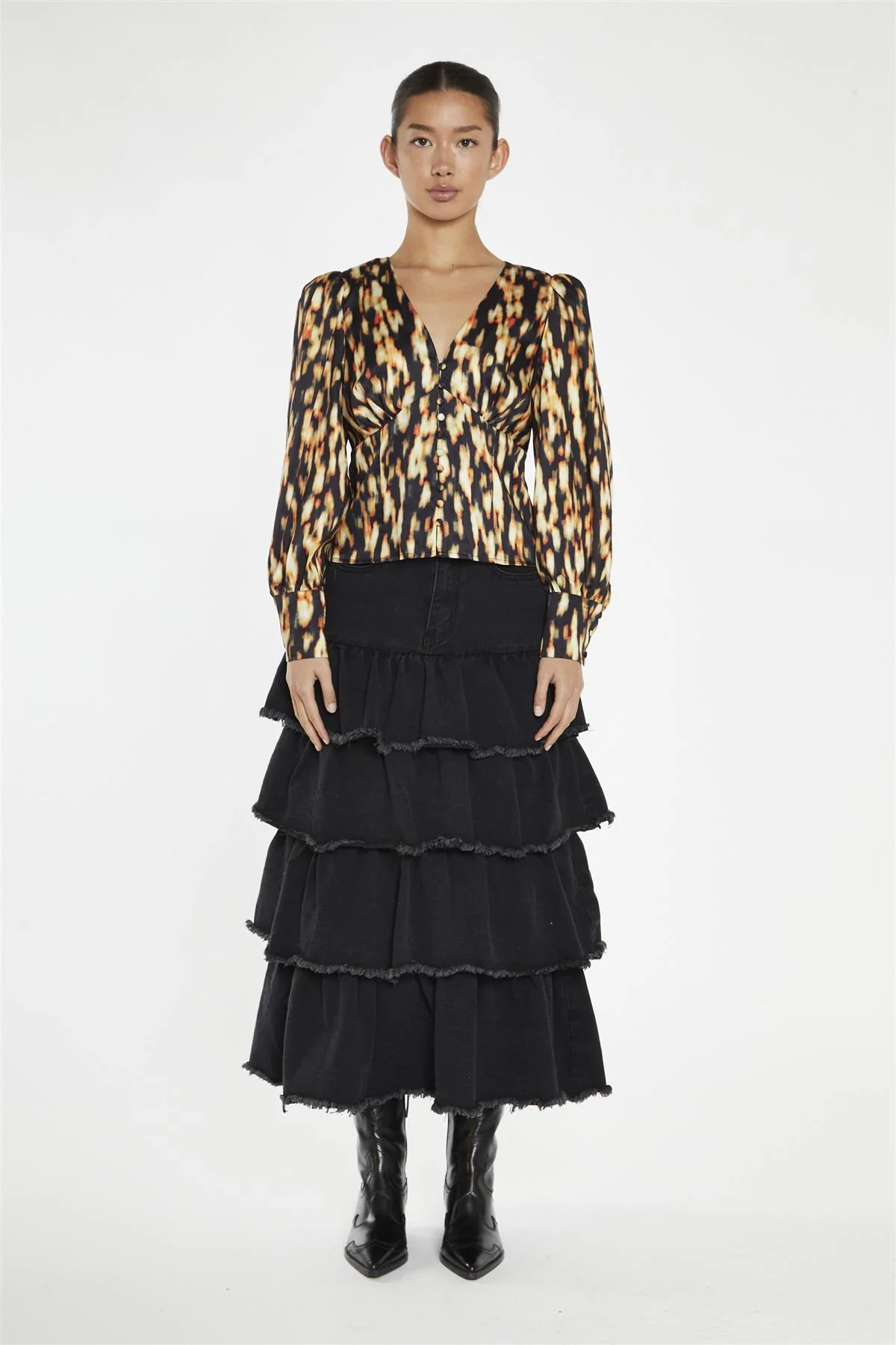 Black-Yellow Brocade Square-Neck Peplum-Top
