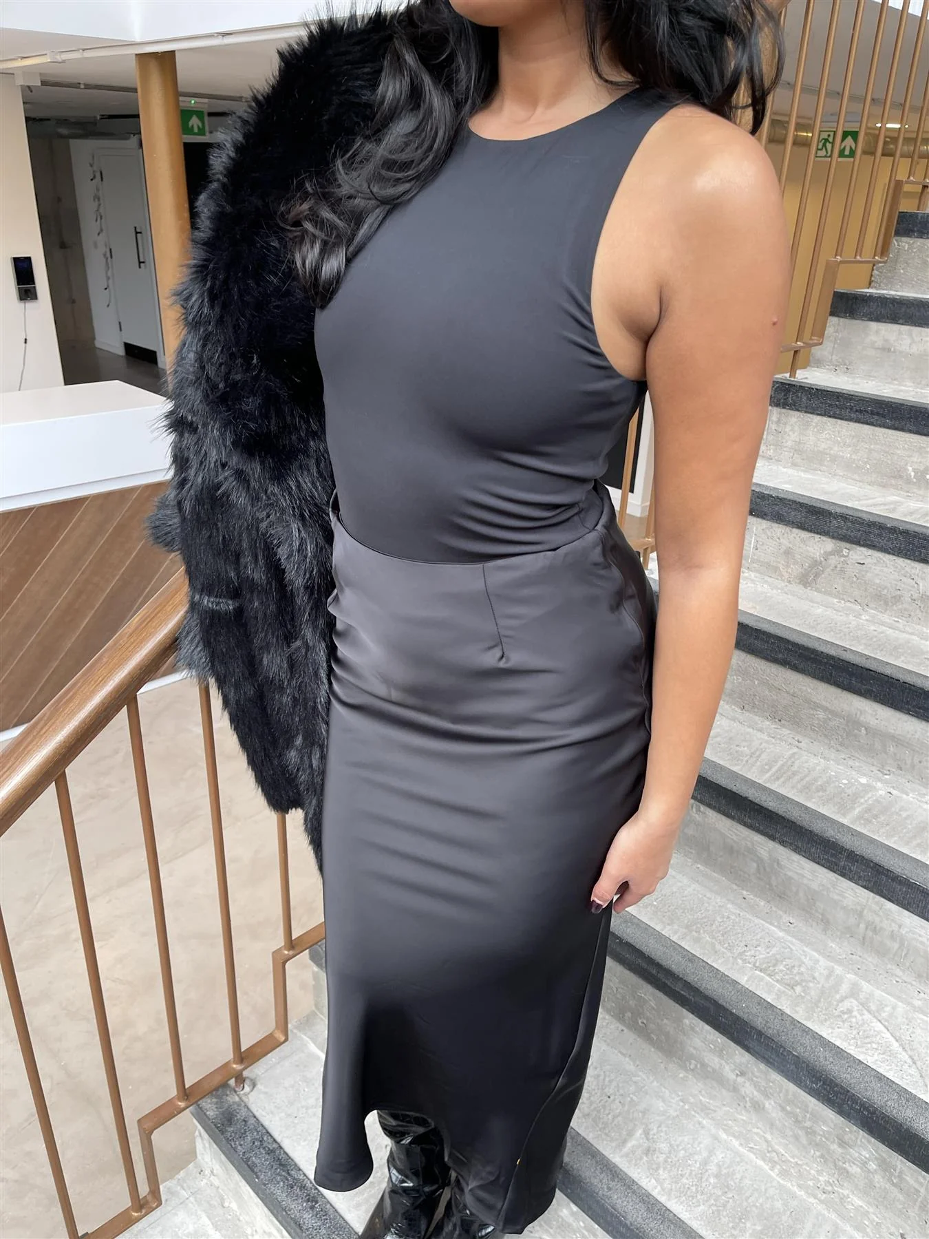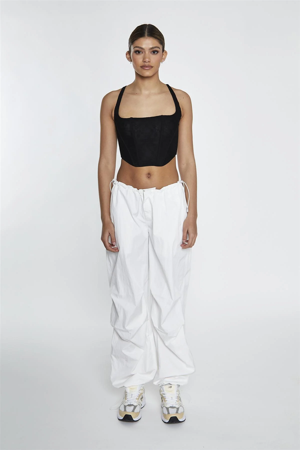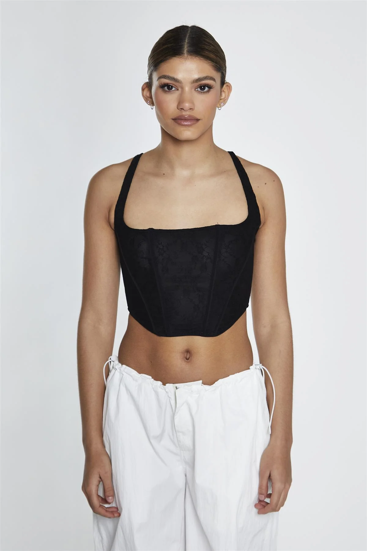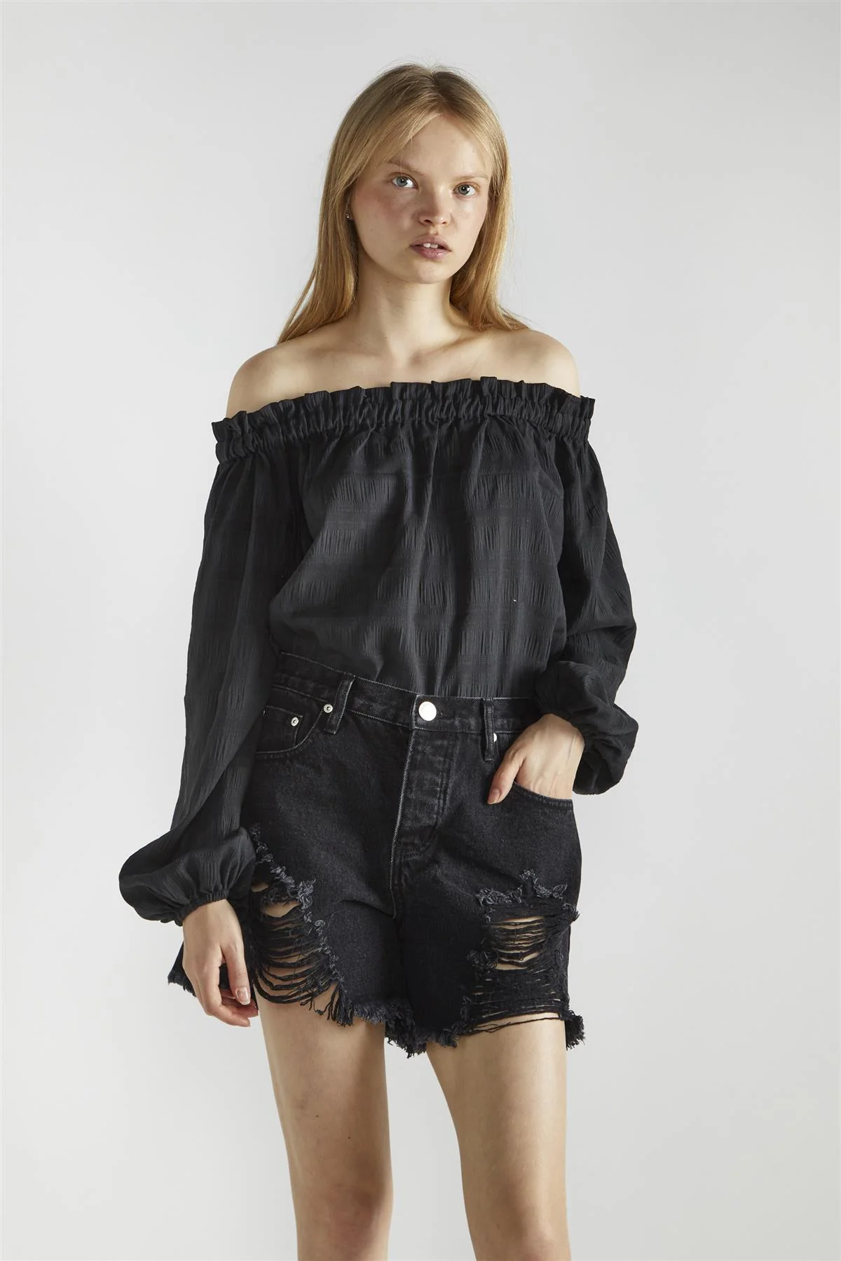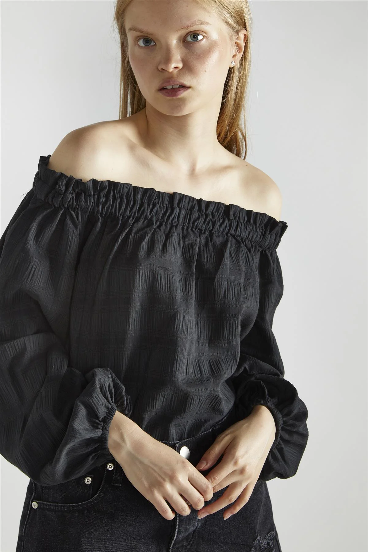 Mint-Black Spliced Mesh Bardot Bodycon-Top
