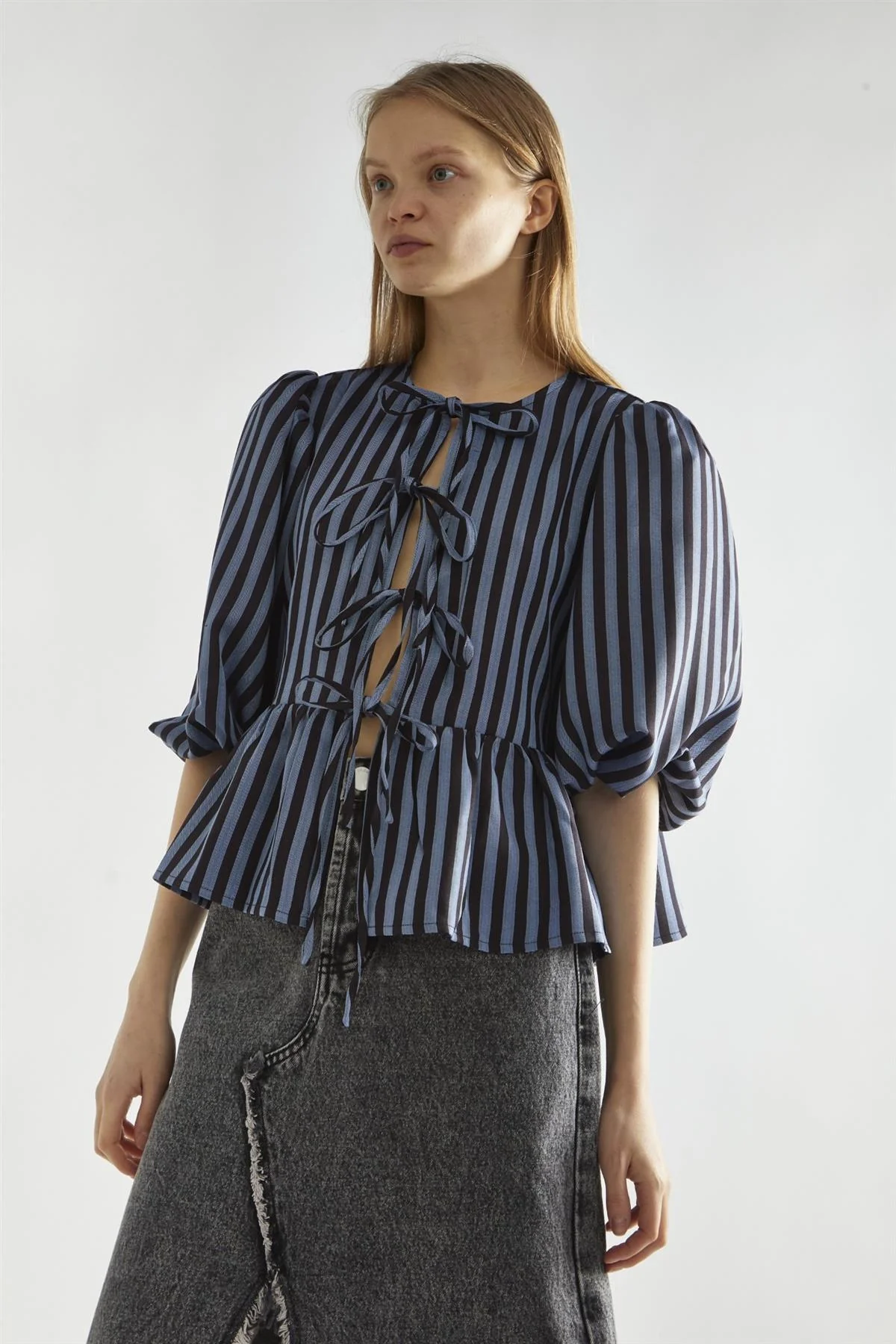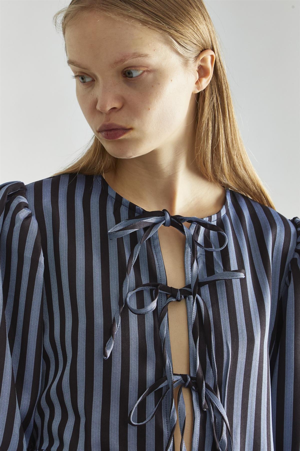 Blue-Black Stripe Tie-Front -Top