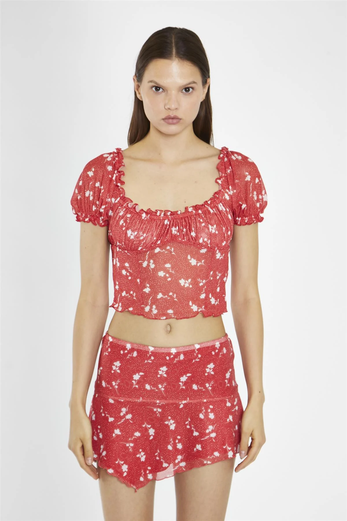 Red Vintage-Floral Milkmaid Crop-Top