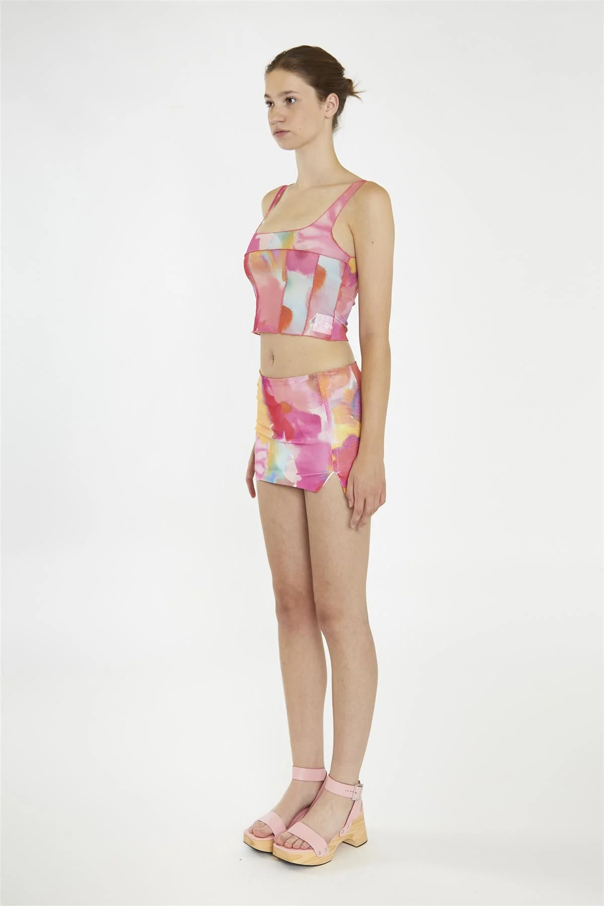 Multi-Watercolour Flower Exposed Seam Crop-Top