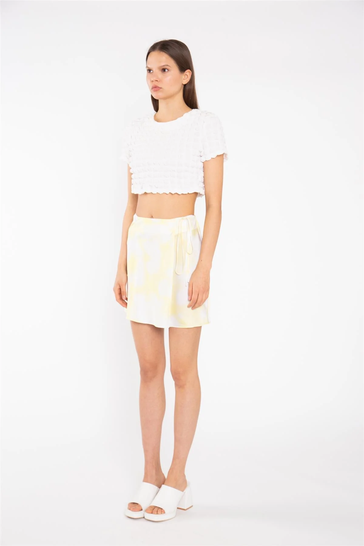 Textured-White Crop-Top