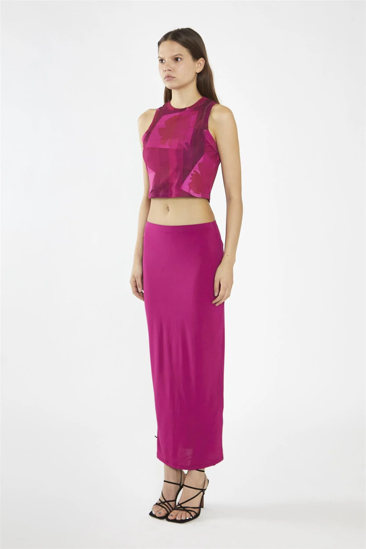 Pink-Block Mesh Racerback Crop-Top