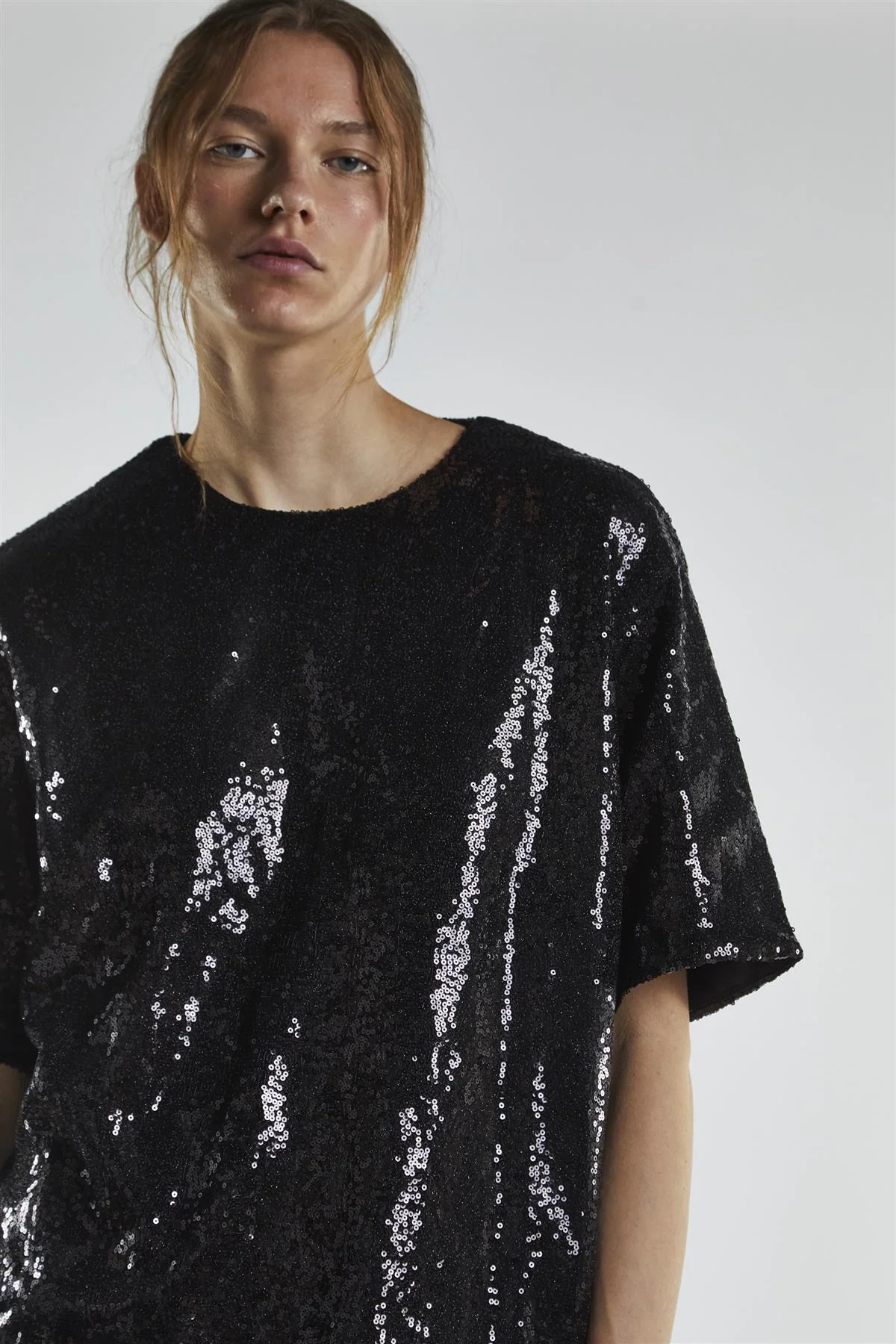 Black-Sequin Oversized-Top