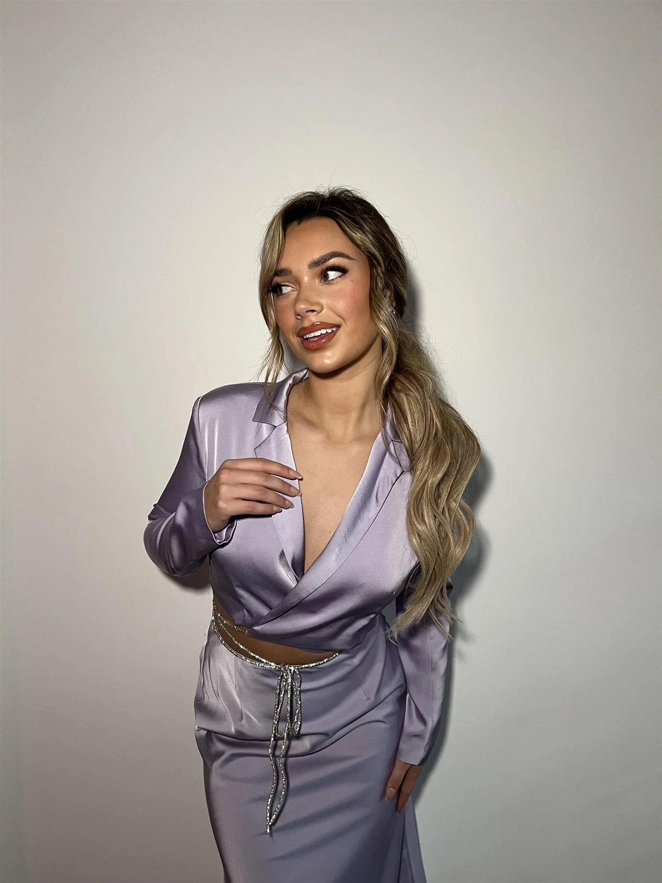 Lilac-Satin Diamante Trim Wrap Crop-Top