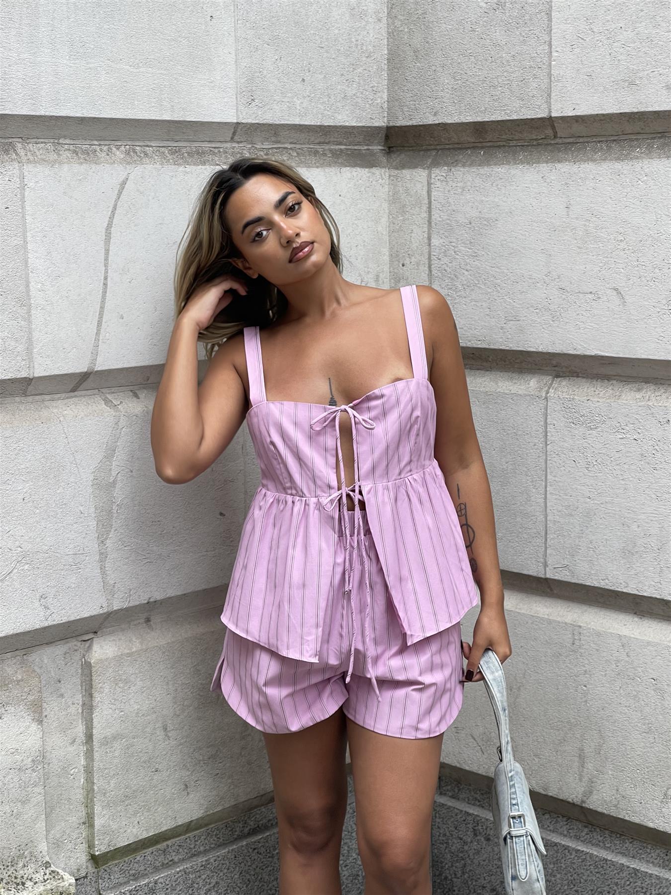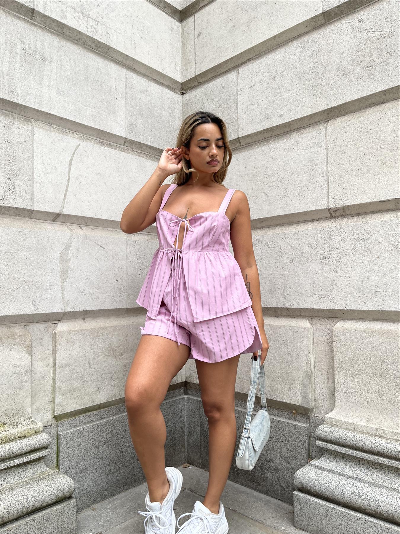 Pink Vertical-Stripe Tie-Front Smock-Top