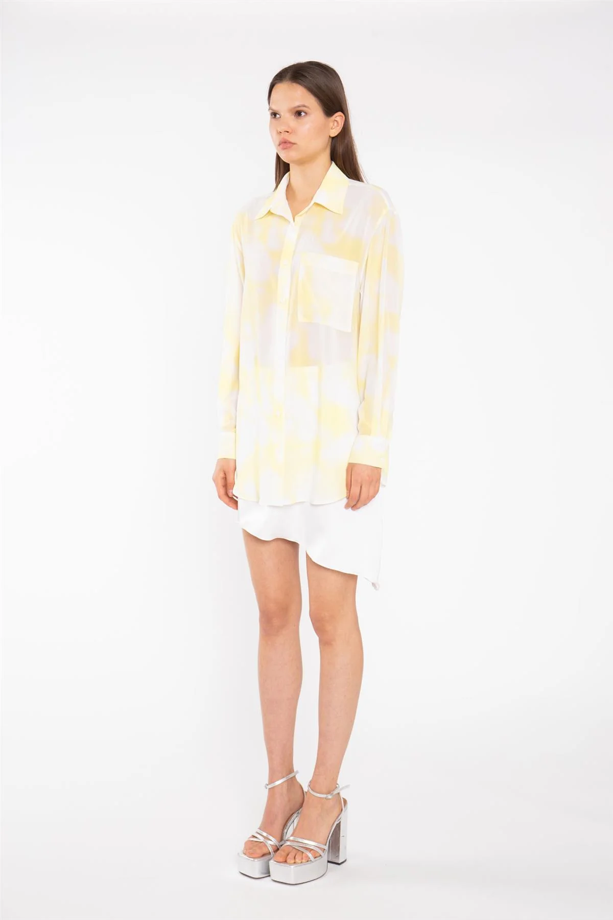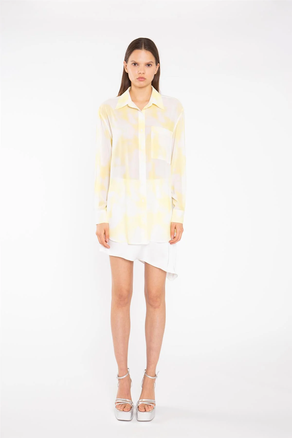Yellow Print-Chiffon Button Down Classic-Shirt