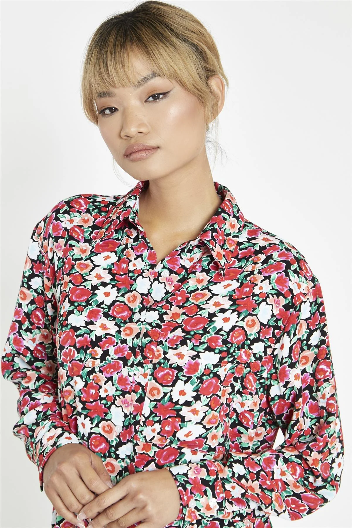 Black-Red 90s-Floral Classic-Shirt