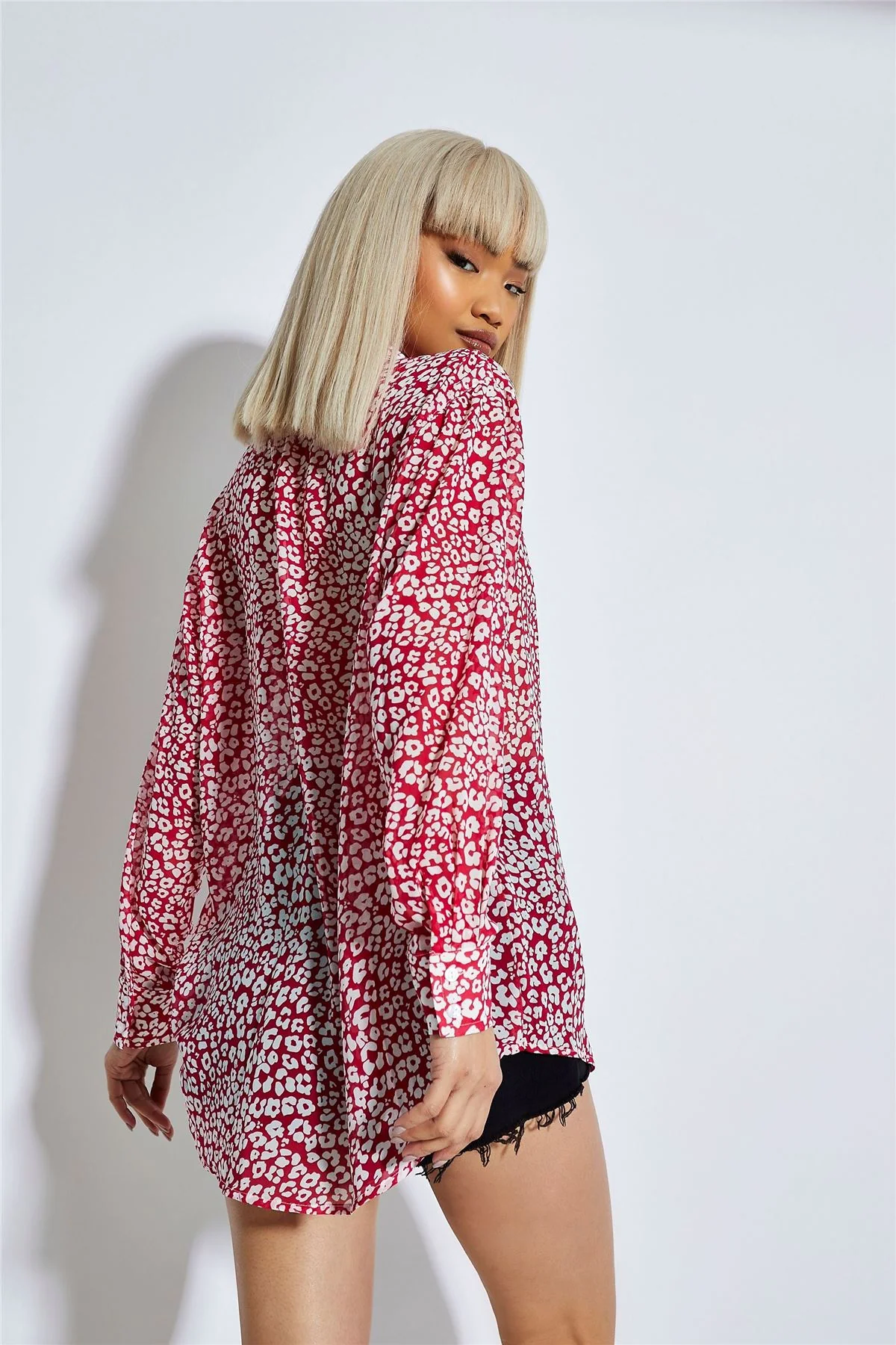 Red-Leopard Chiffon Classic-Shirt