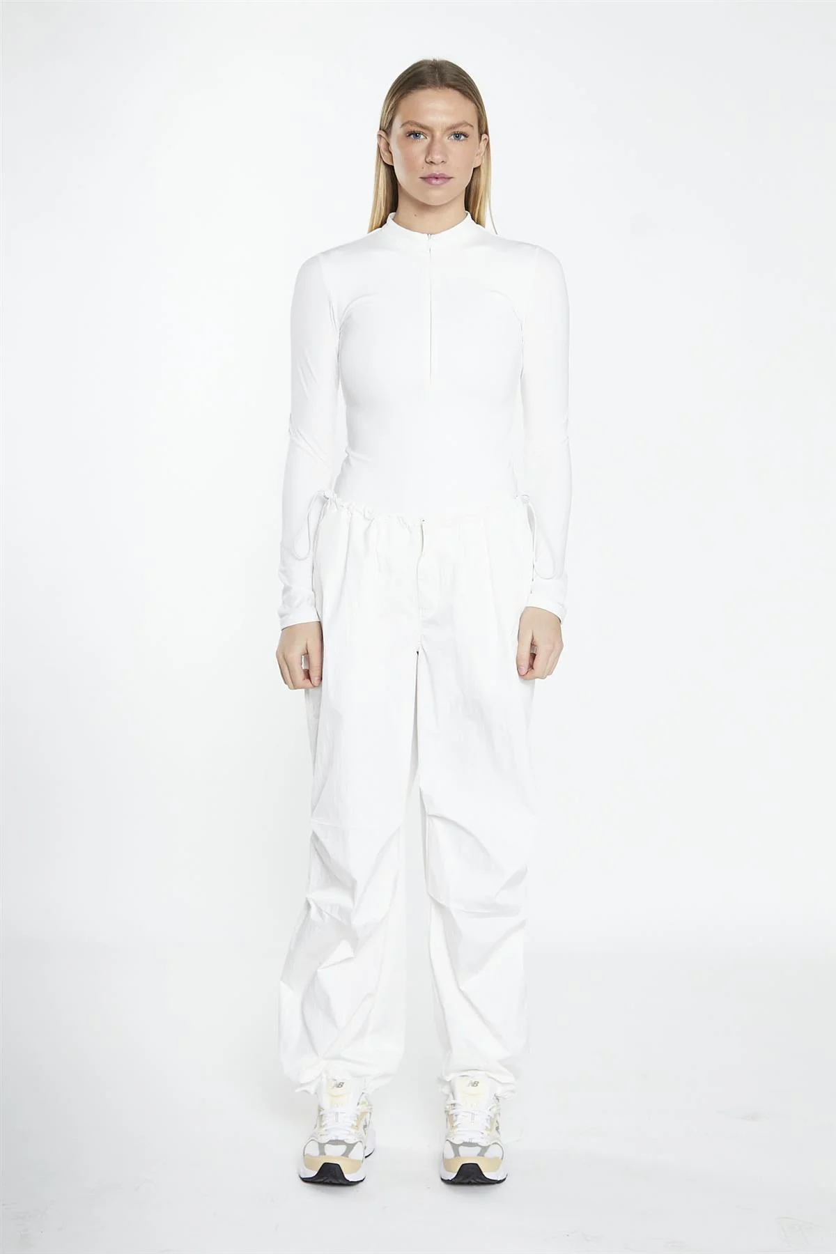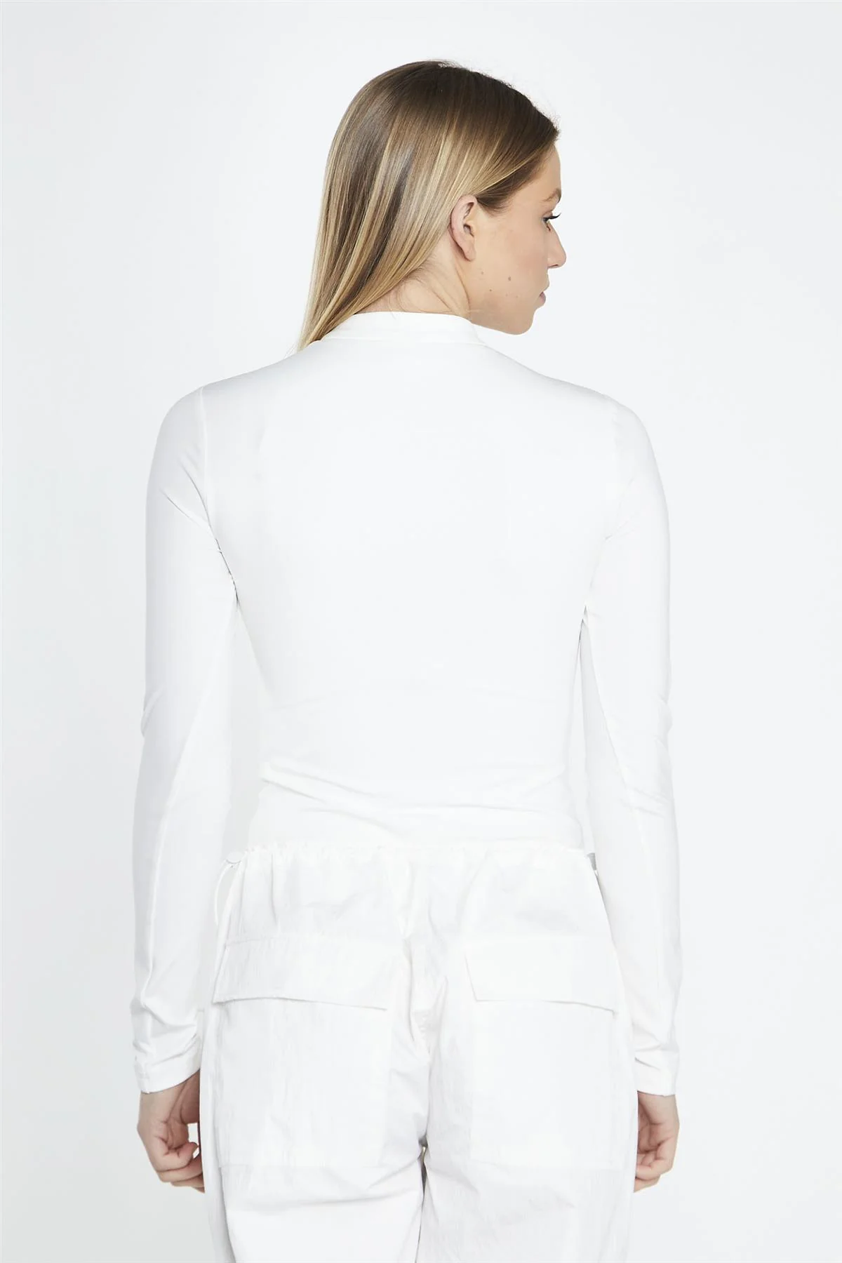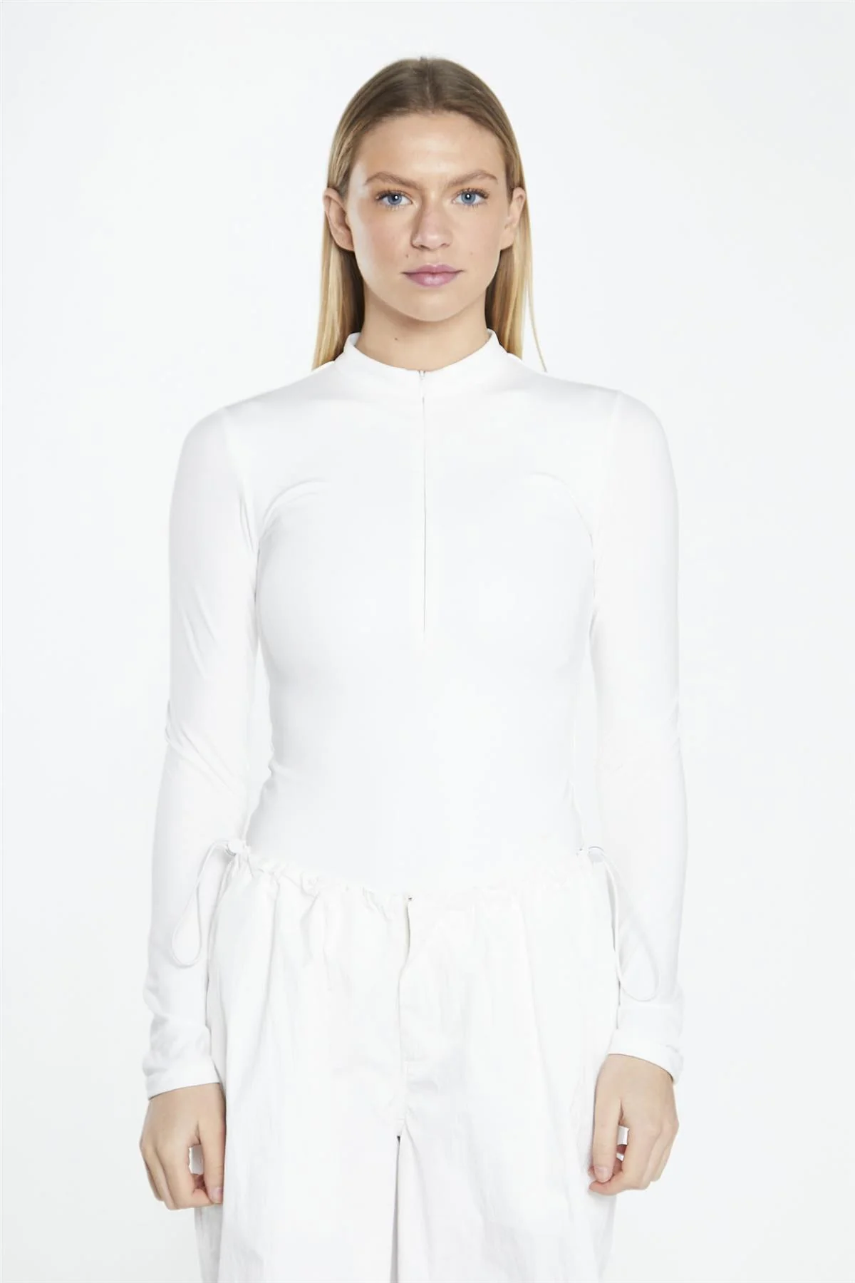 Off White Long-Sleeve Zip-Up Bodysuit